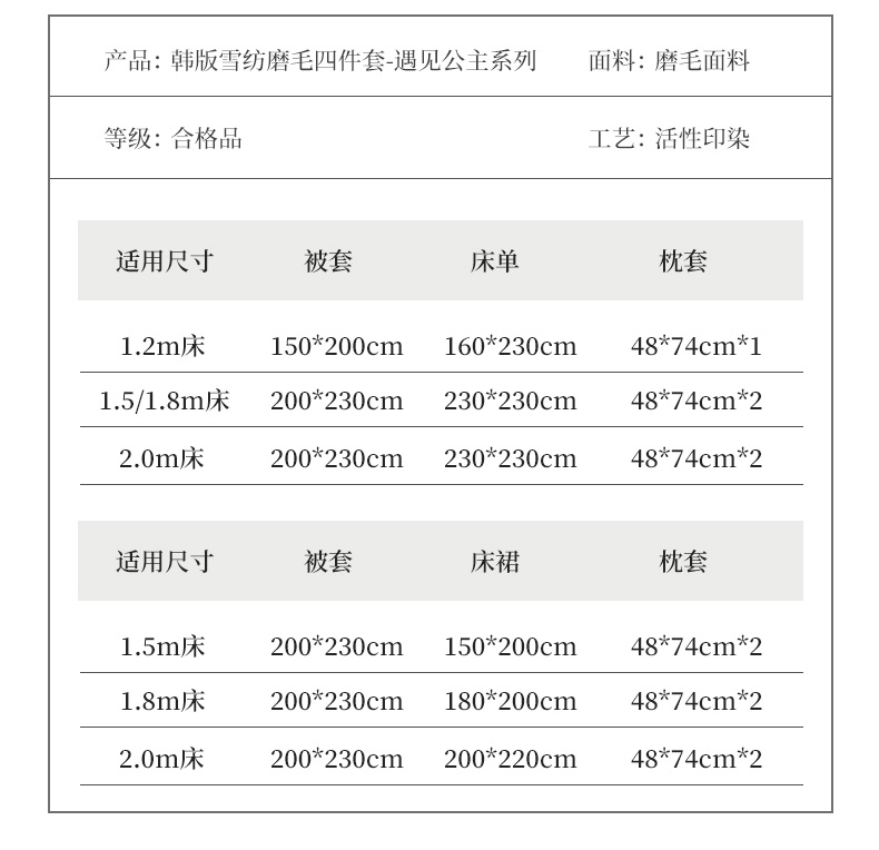 【床裙款】1.5四件套-被套200x230 | ¥60.00 |