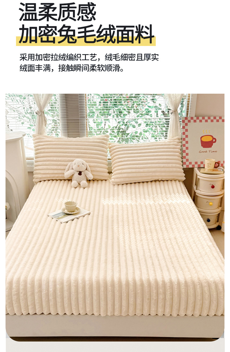 • 91家纺网 家纺一手货源 找家纺 柏薇 2025新款A类300g兔毛抽条床笠 黑色-床笠