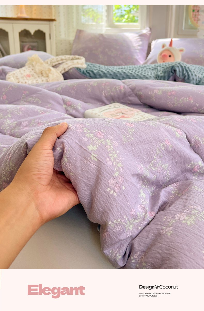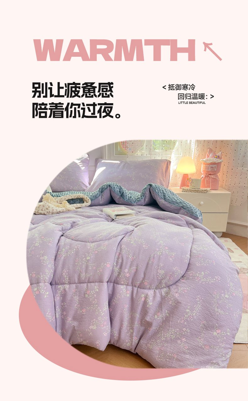 • 91家纺网 家纺一手货源 找家纺 VIP被业 2025新款云感棉双层纱豆豆绒冬被被子被芯 紫藤月影