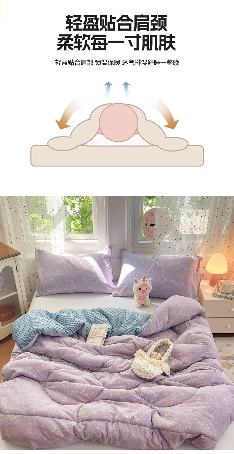 VIP被业 2025新款云感棉双层纱豆豆绒冬被被子被芯 紫藤月影