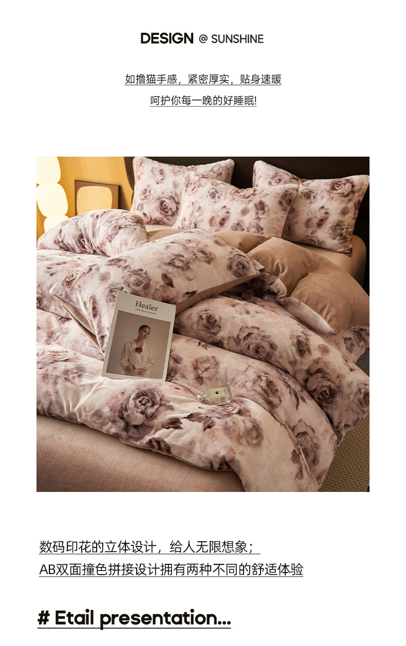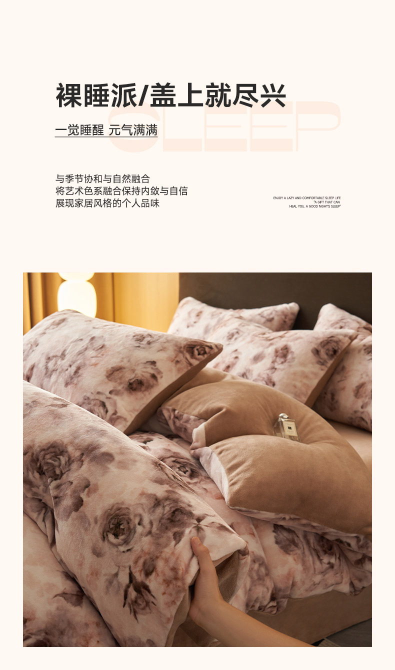 商品名称:吾诺家居 2025新款美拉德数码绒暖秋系列四件套 花韵