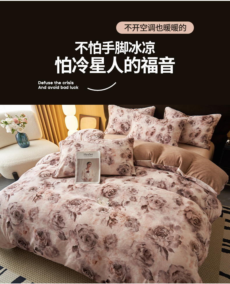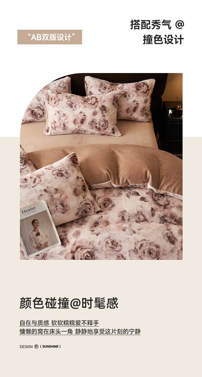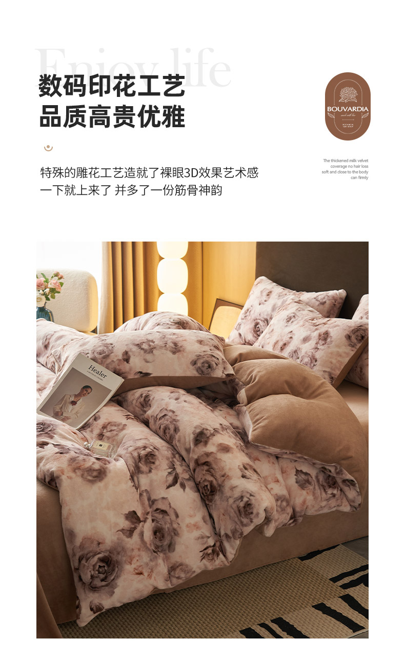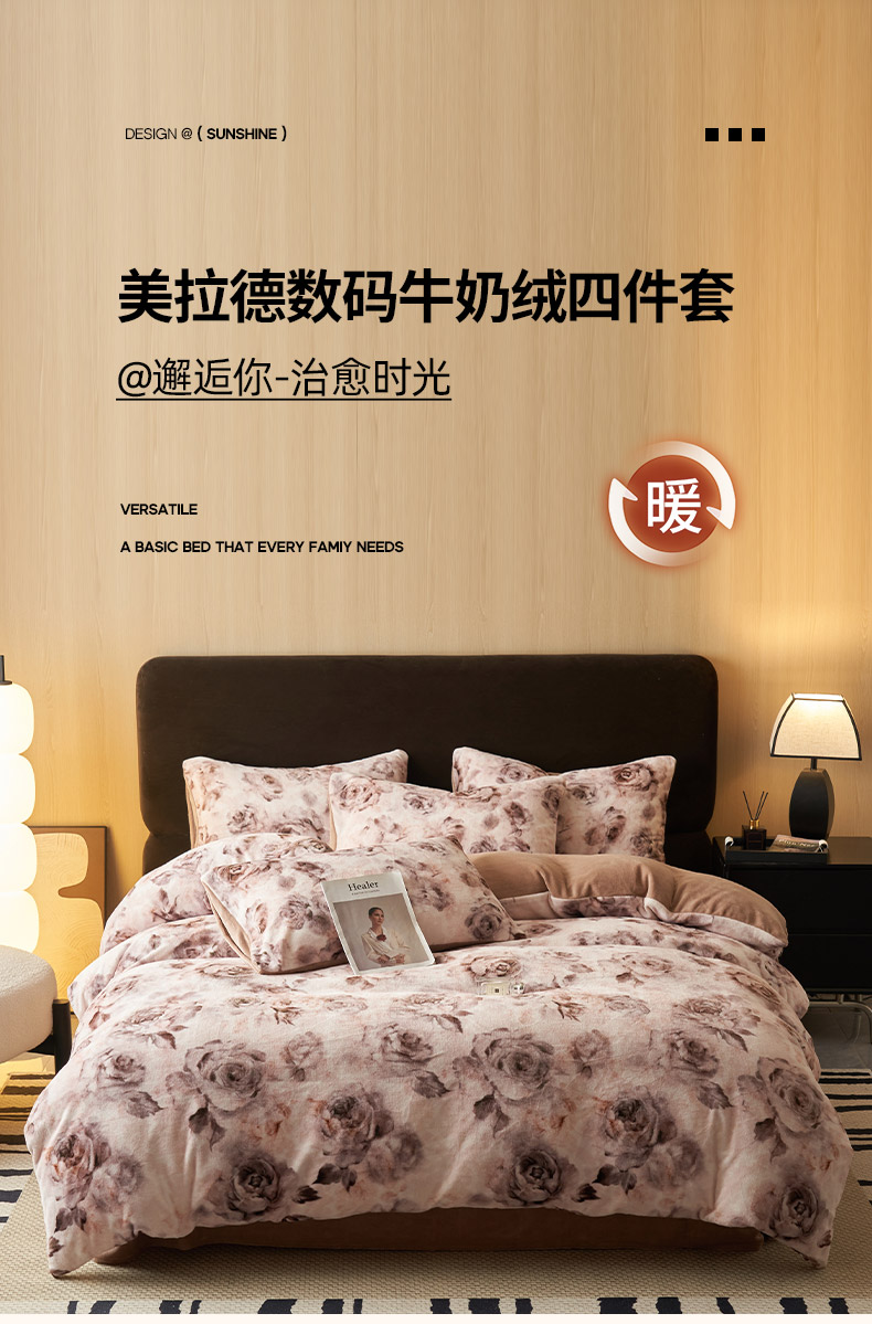 吾诺家居 2025新款美拉德数码绒暖秋系列四件套 花韵