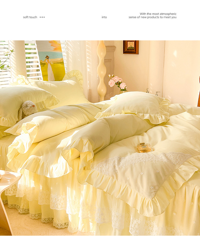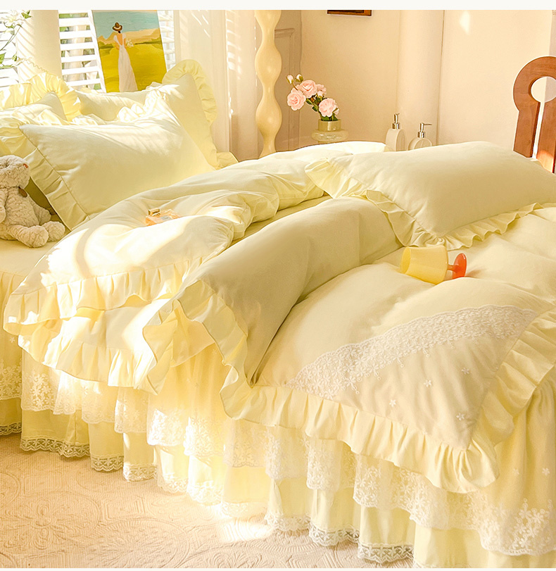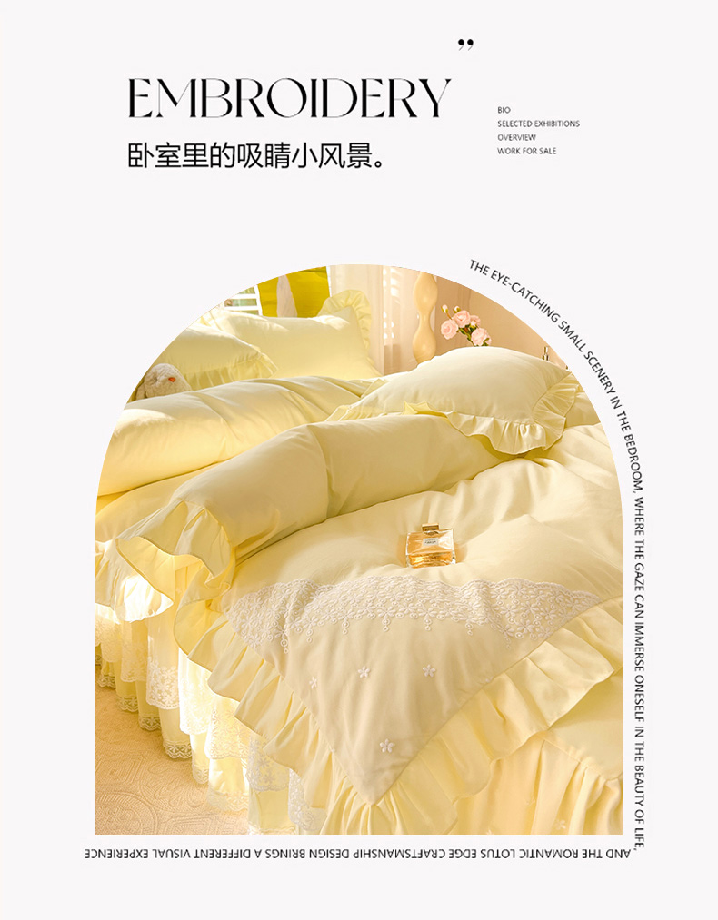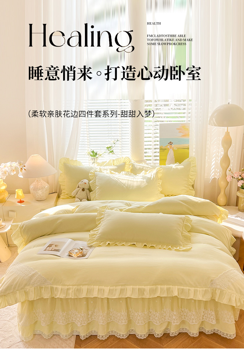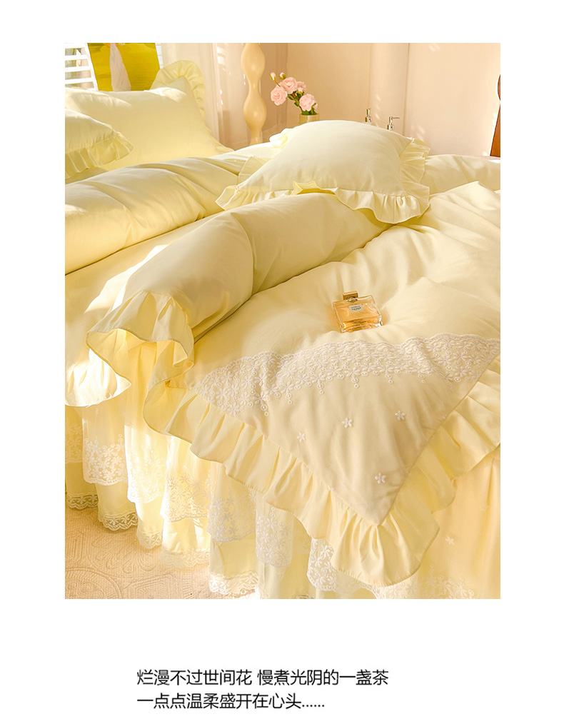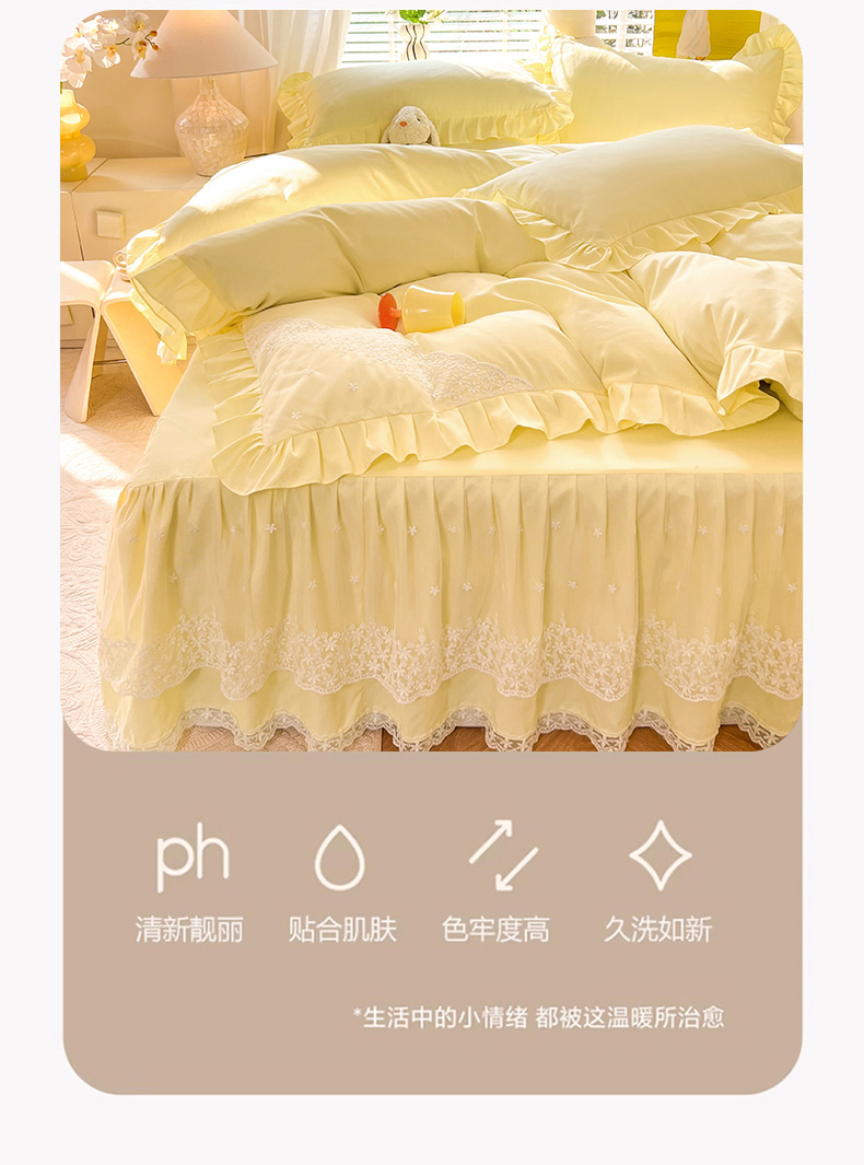 后庭寝室 2025新款柔软亲肤花边蕾丝床裙四件套-花颜系列 花颜-米黄