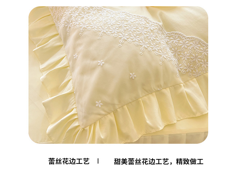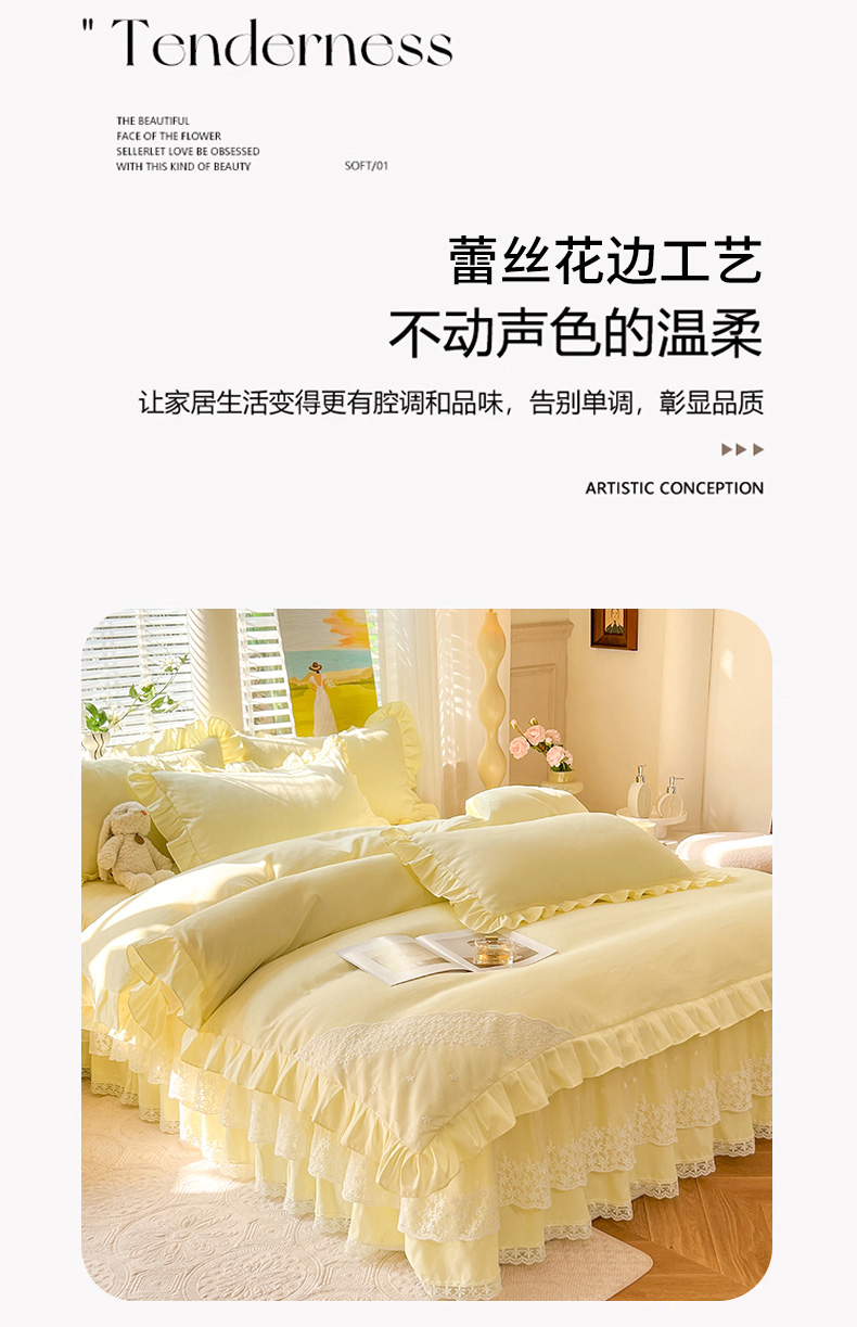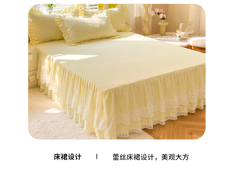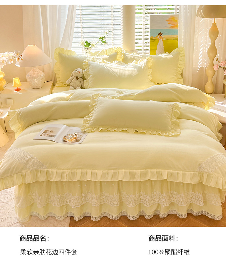 商品名称:后庭寝室 2025新款柔软亲肤花边蕾丝床裙四件套-花颜系列 花颜-米黄