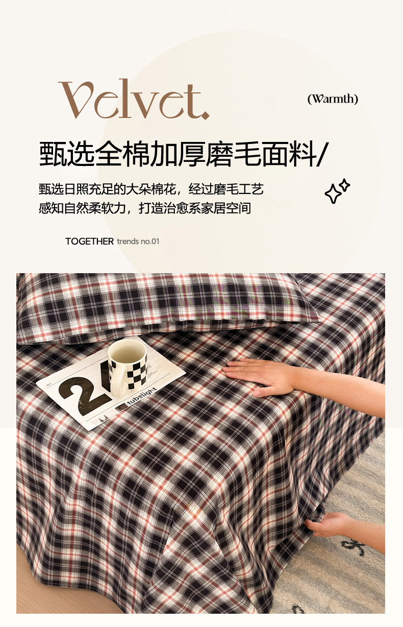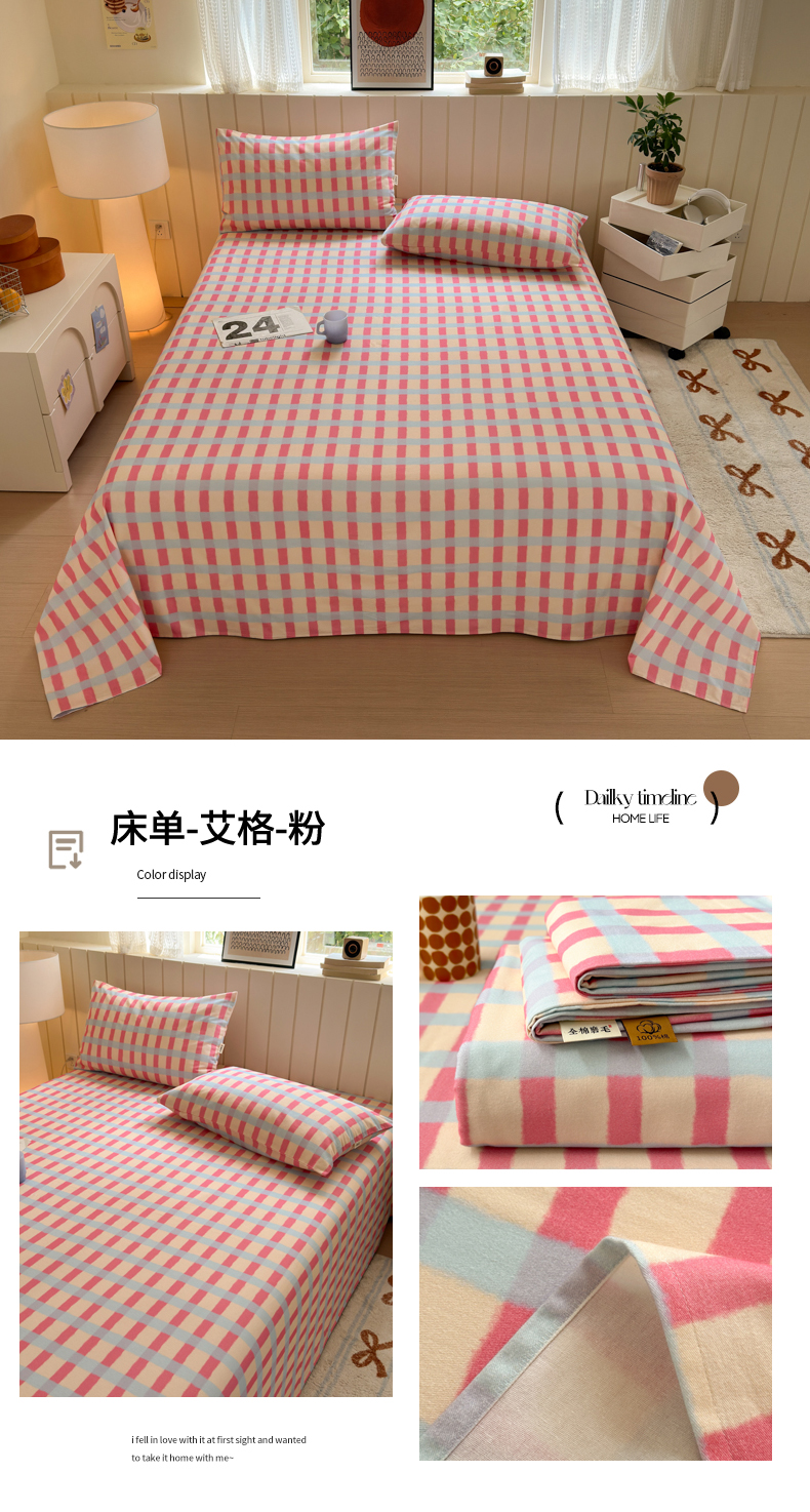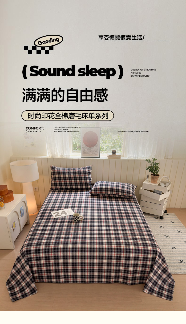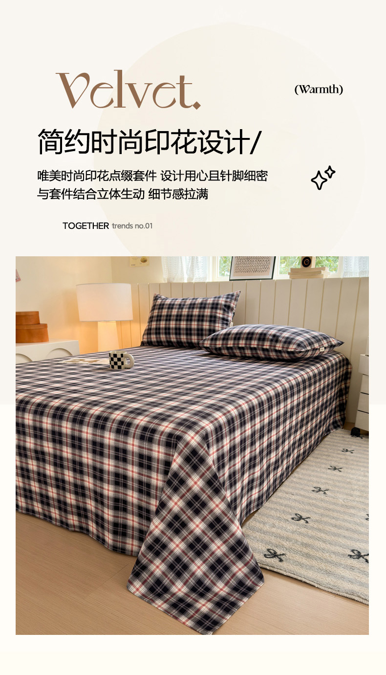 商品名称:如意朵 2025新款时尚印花全棉加厚磨毛床单 布朗妮