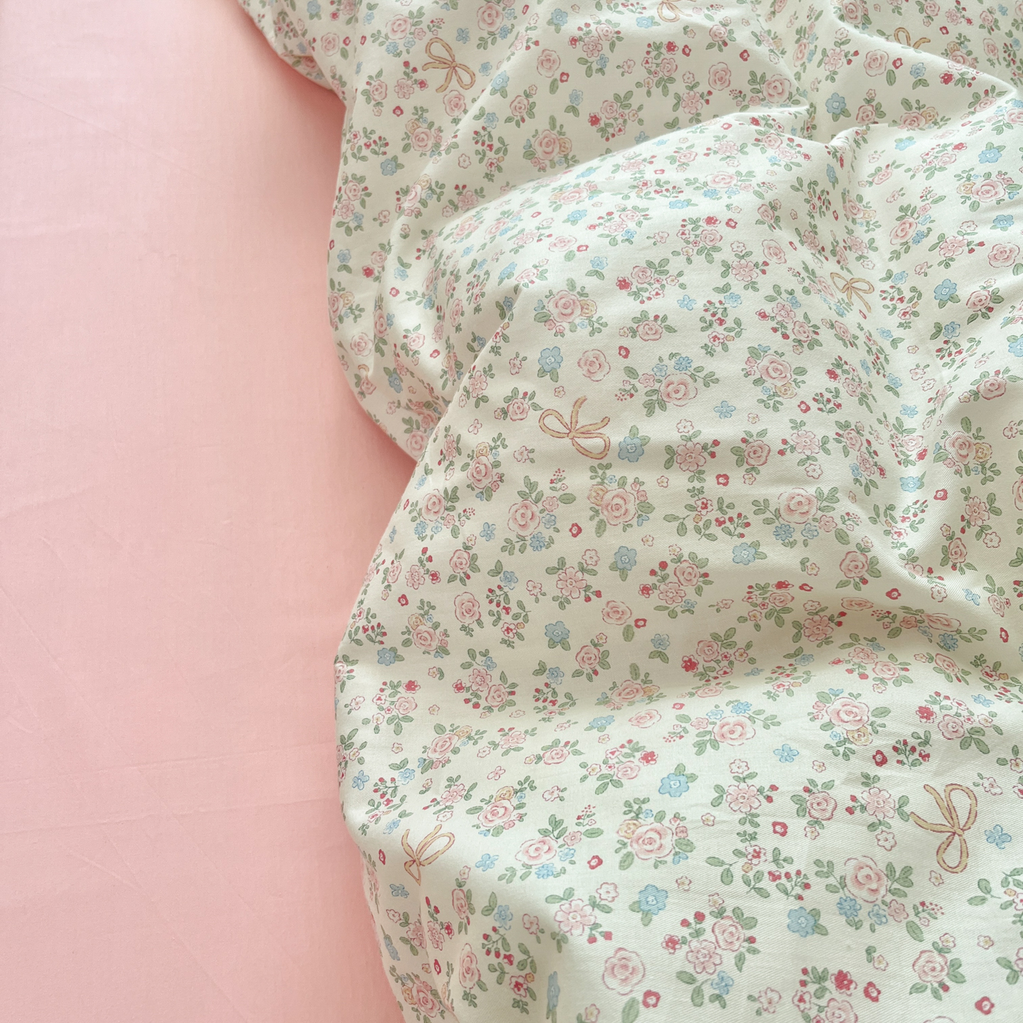 花海 2025年第一批小清新碎花全棉纯棉四件套40支13372ins博主风学生宿舍印花AA版纯色床单 樱蔓绿,樱蔓绿