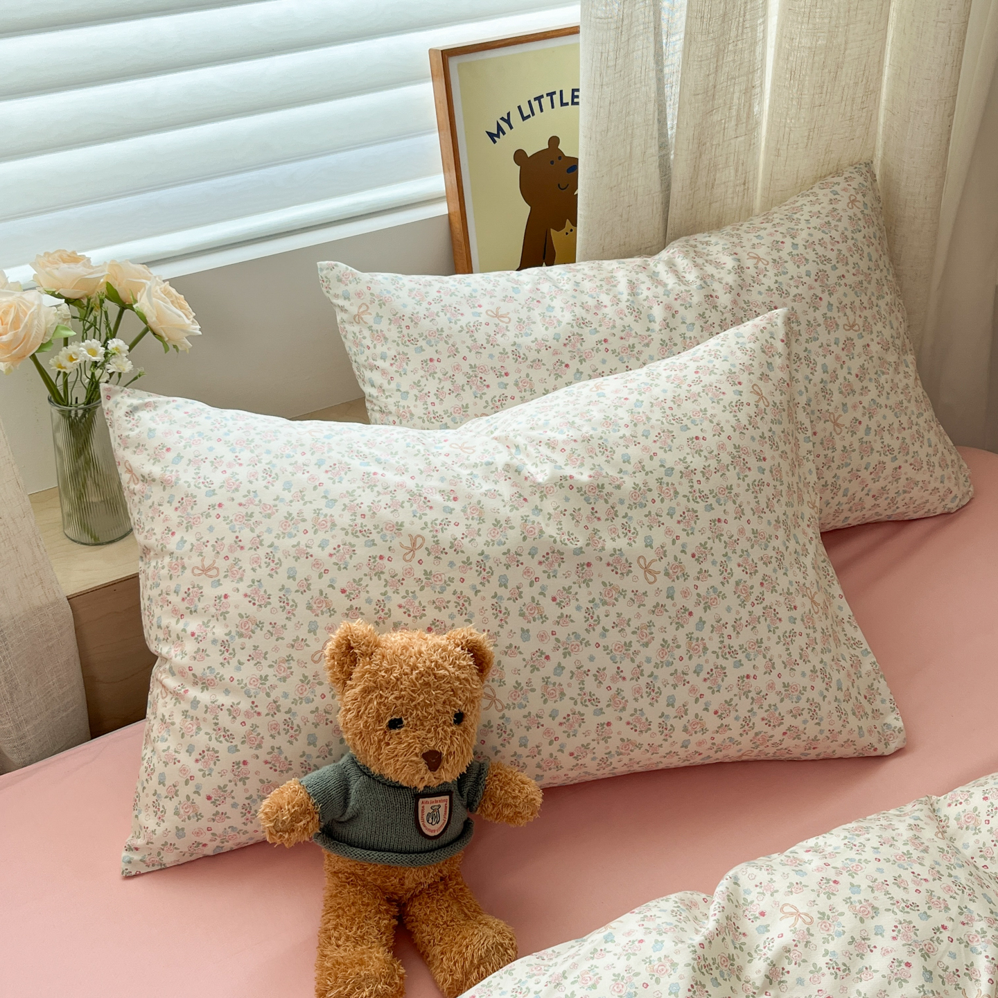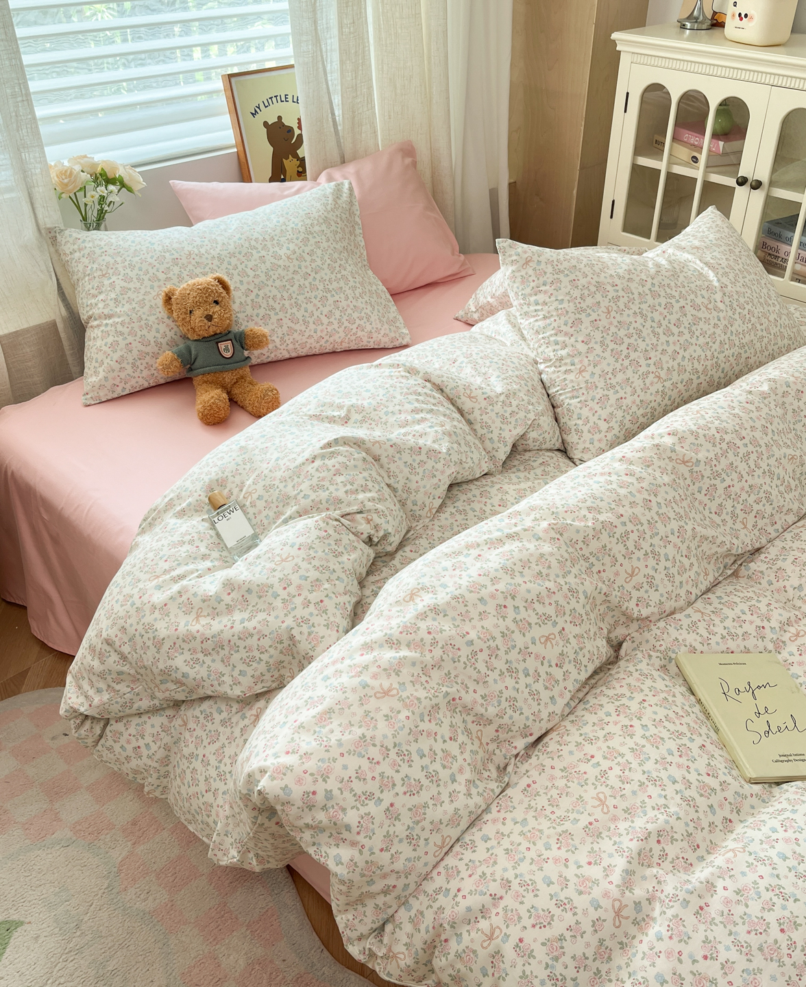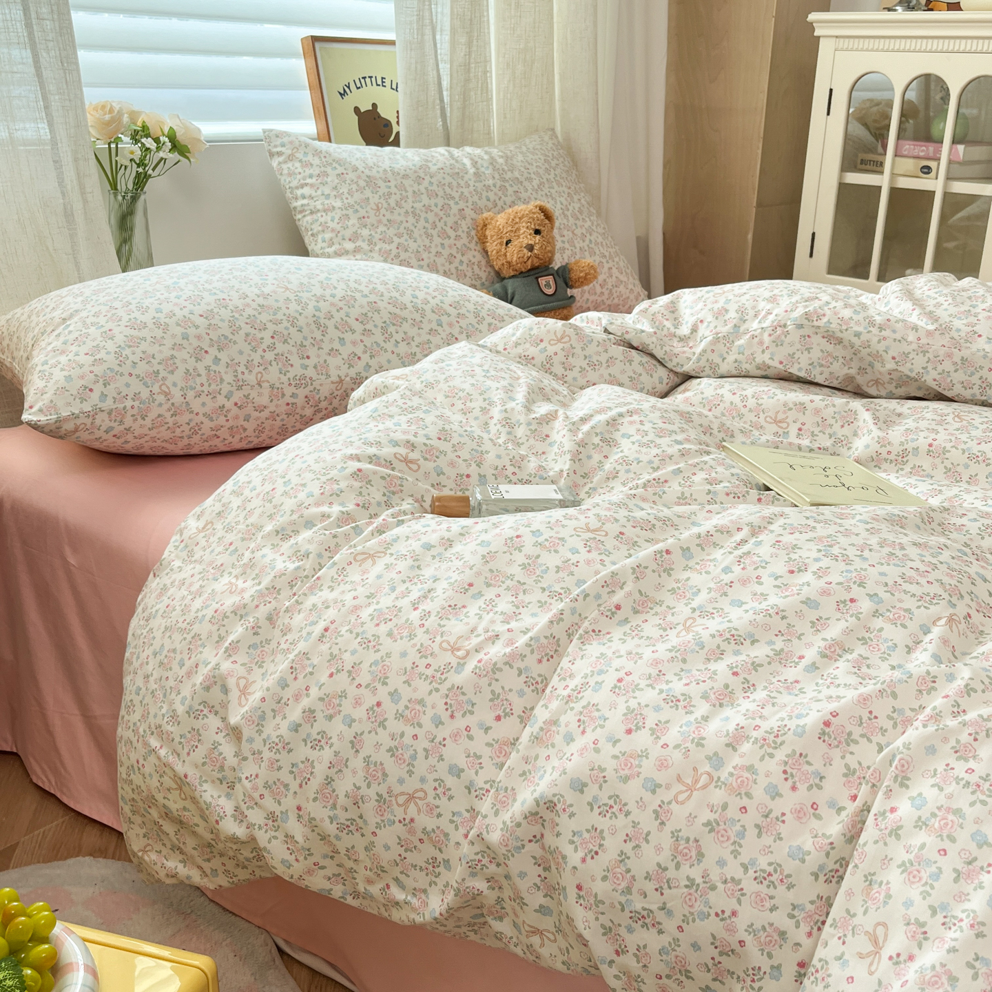 花海 2025年第一批小清新碎花全棉纯棉四件套40支13372ins博主风学生宿舍印花AA版纯色床单 山茶物语粉,山茶物语粉