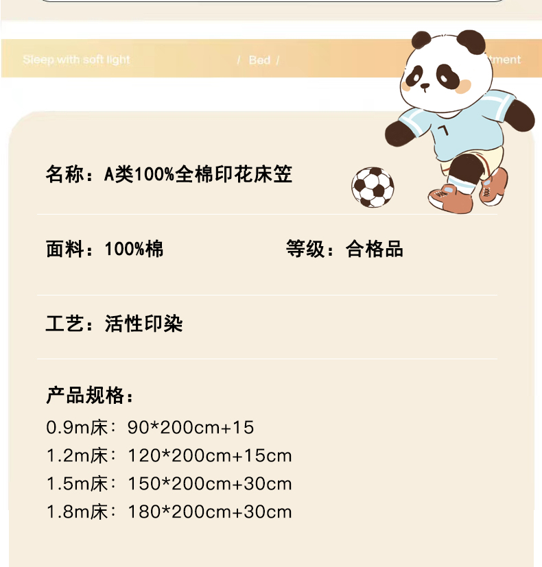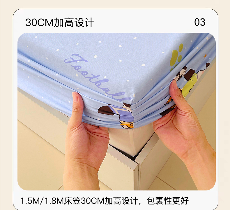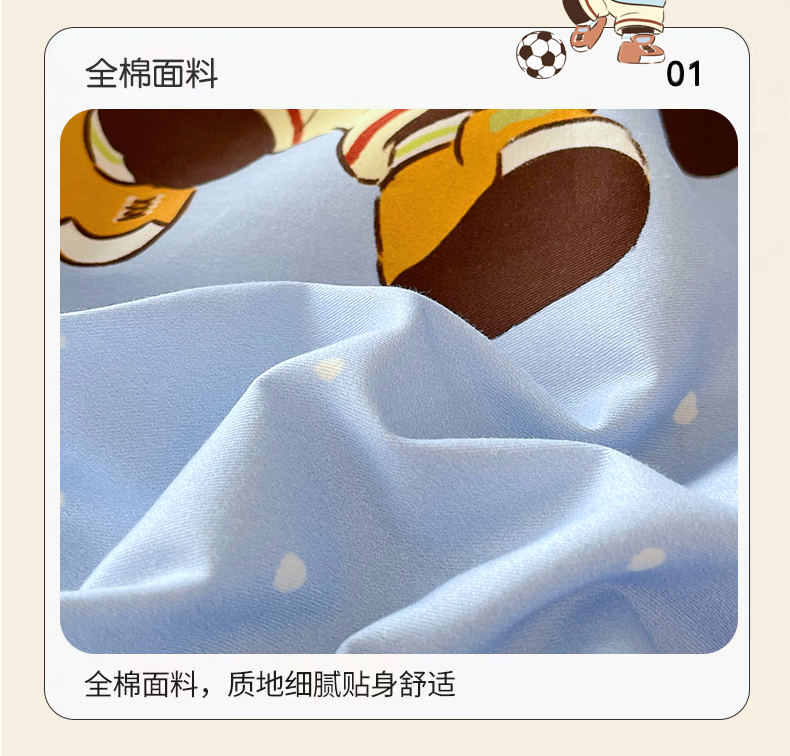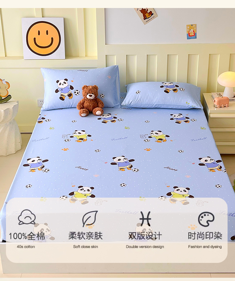 商品名称:金鑫汇家纺 2025新款A类全棉纯棉印花大床图单床笠 床笠单件 足球争霸赛-蓝