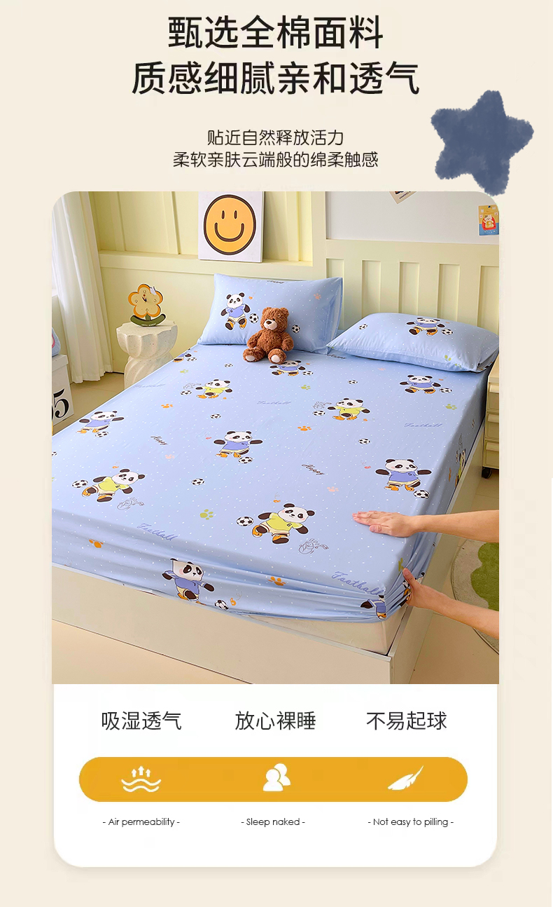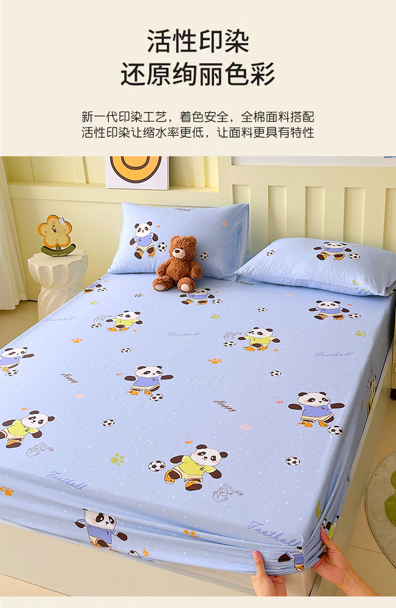 金鑫汇家纺 2025新款A类全棉纯棉印花大床图单床笠 床笠单件 足球争霸赛-蓝