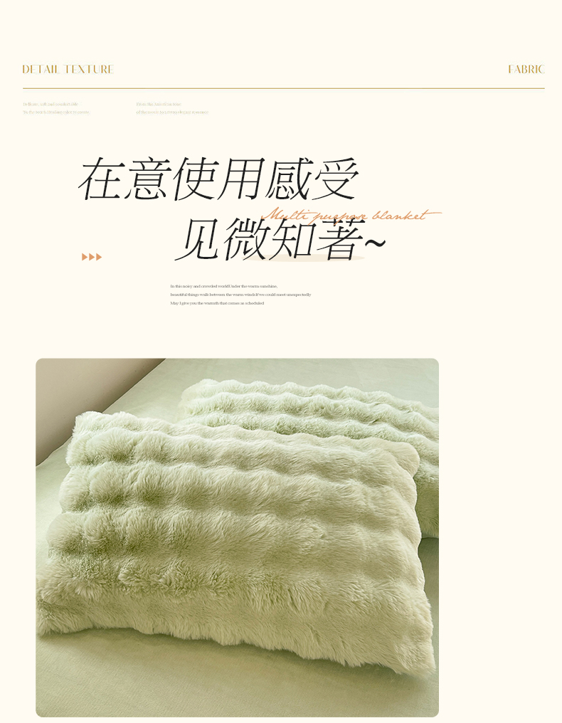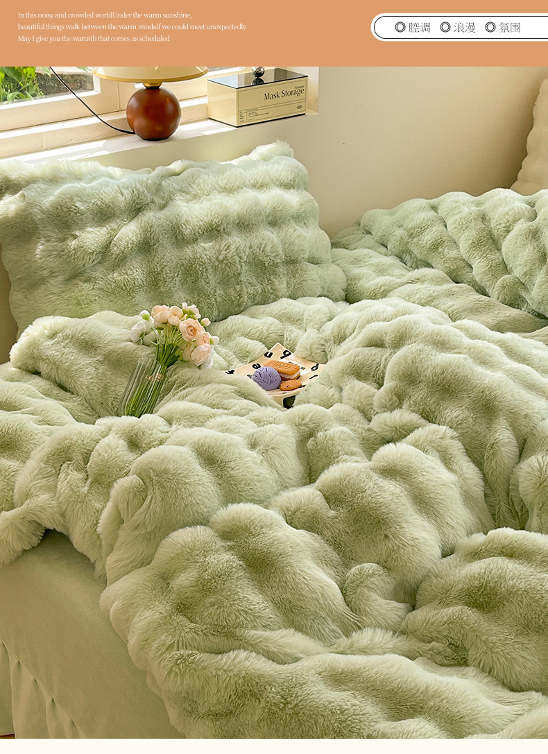 当前位置: 91家纺网 > 商品网购 > 床品套件 > 四件套 > 兔毛绒四件套 > 悦织湾家纺 2025新款A类12斤獭兔毛580克托斯卡纳大泡泡双面兔毛绒四件套 兔兔绒-抹茶绿