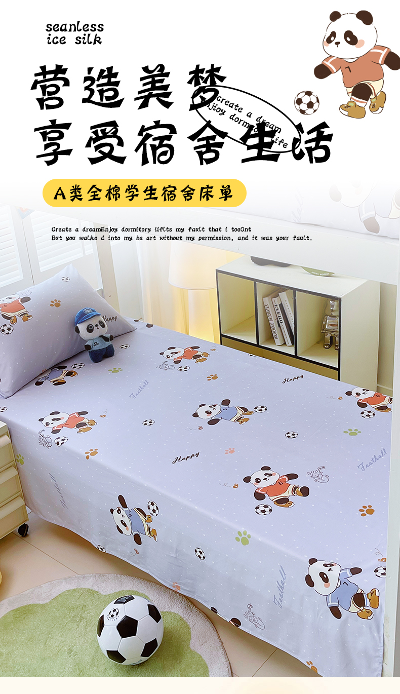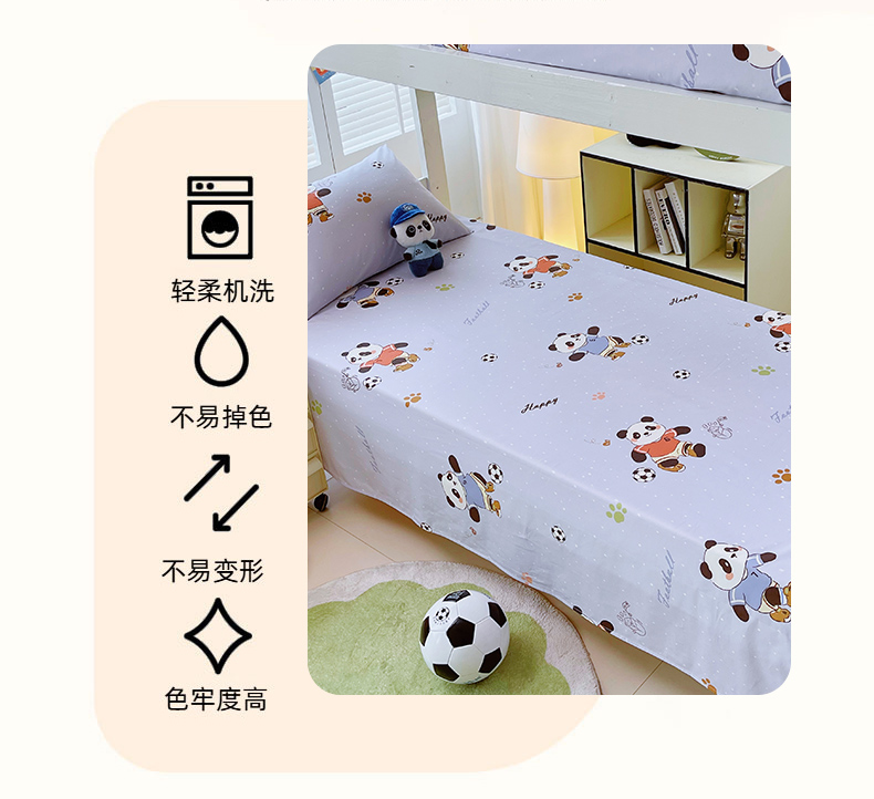 商品名称:金鑫汇家纺 2025新款A类全棉纯棉印花学生床单品床单 床单单件 足球争霸赛-灰