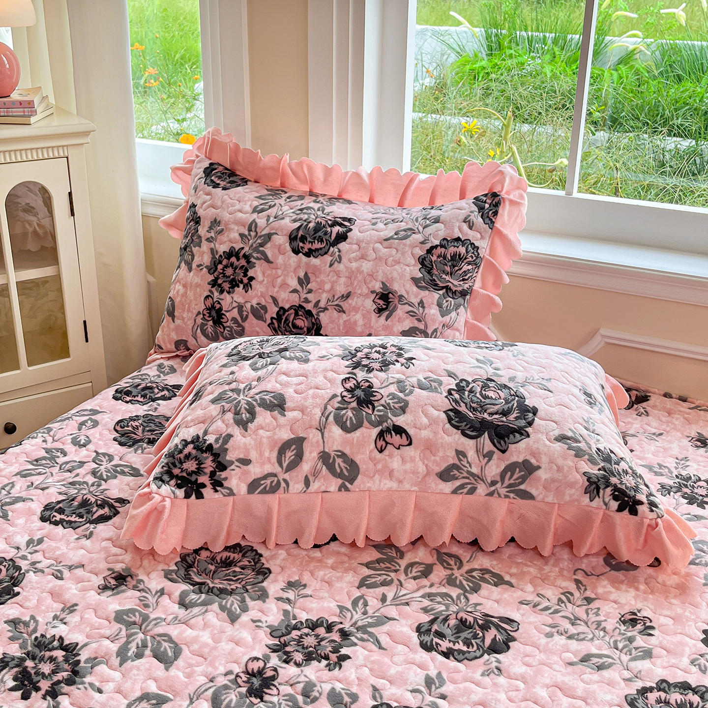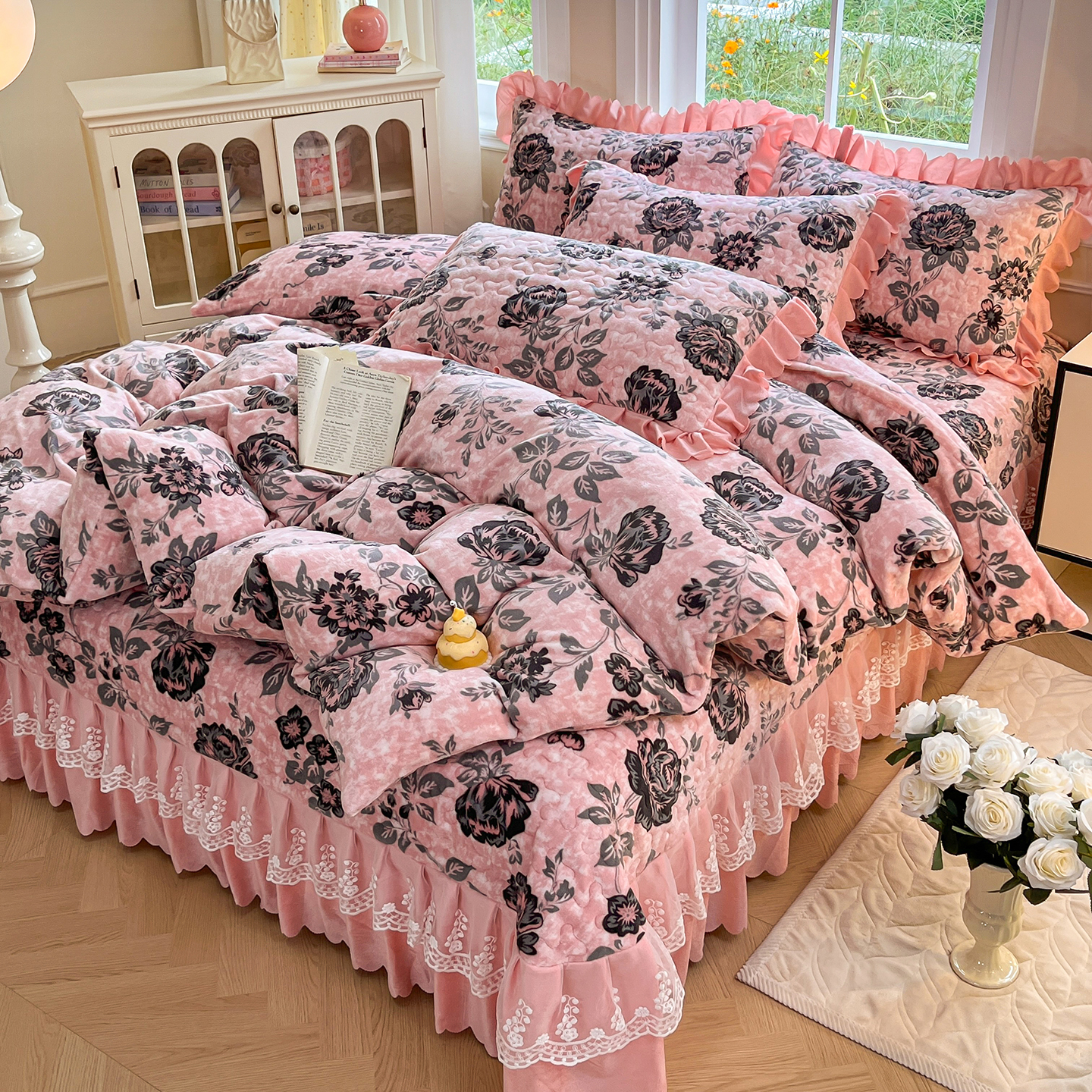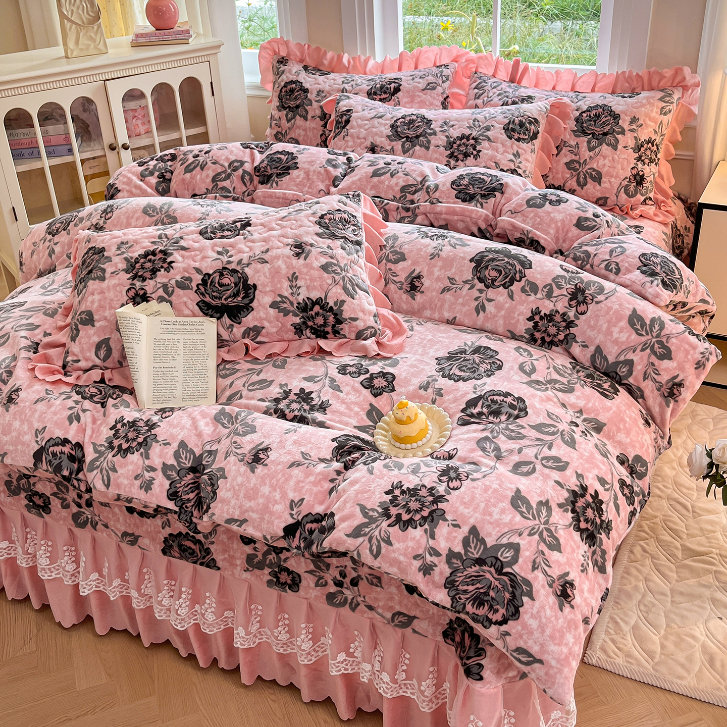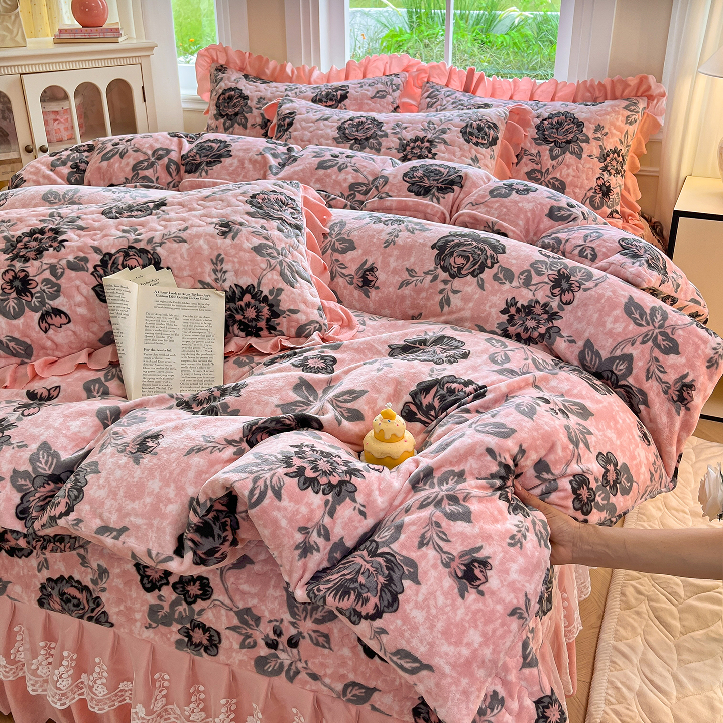 当前位置: 91家纺网 > 商品网购 > 床品套件 > 四件套 > 牛奶绒四件套 > 提花大世界 2025新款爆款高克重牛奶绒印花夹棉蕾丝花边床盖床三件四件套 花枝韵