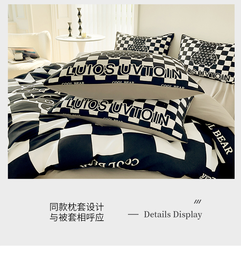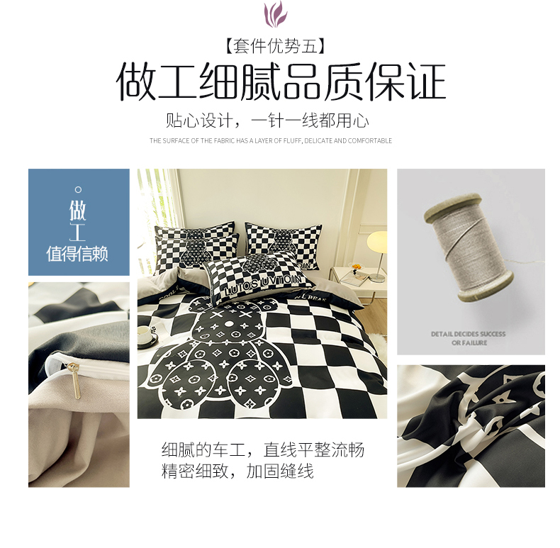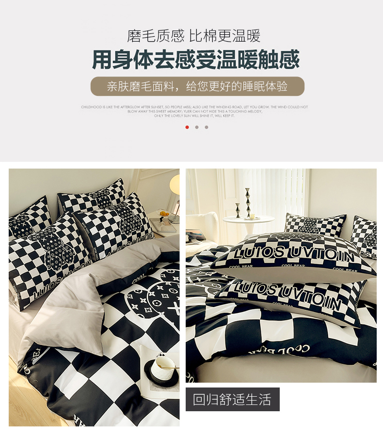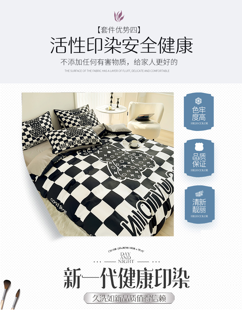 商品名称:摩卡(乐趣) 2025秋冬新品网红款水洗棉四季款四件套 棋盘格公仔