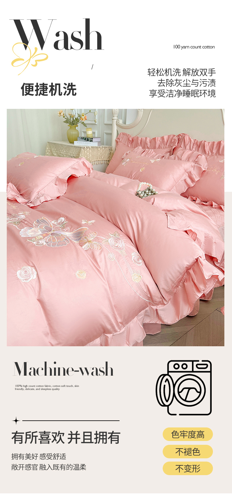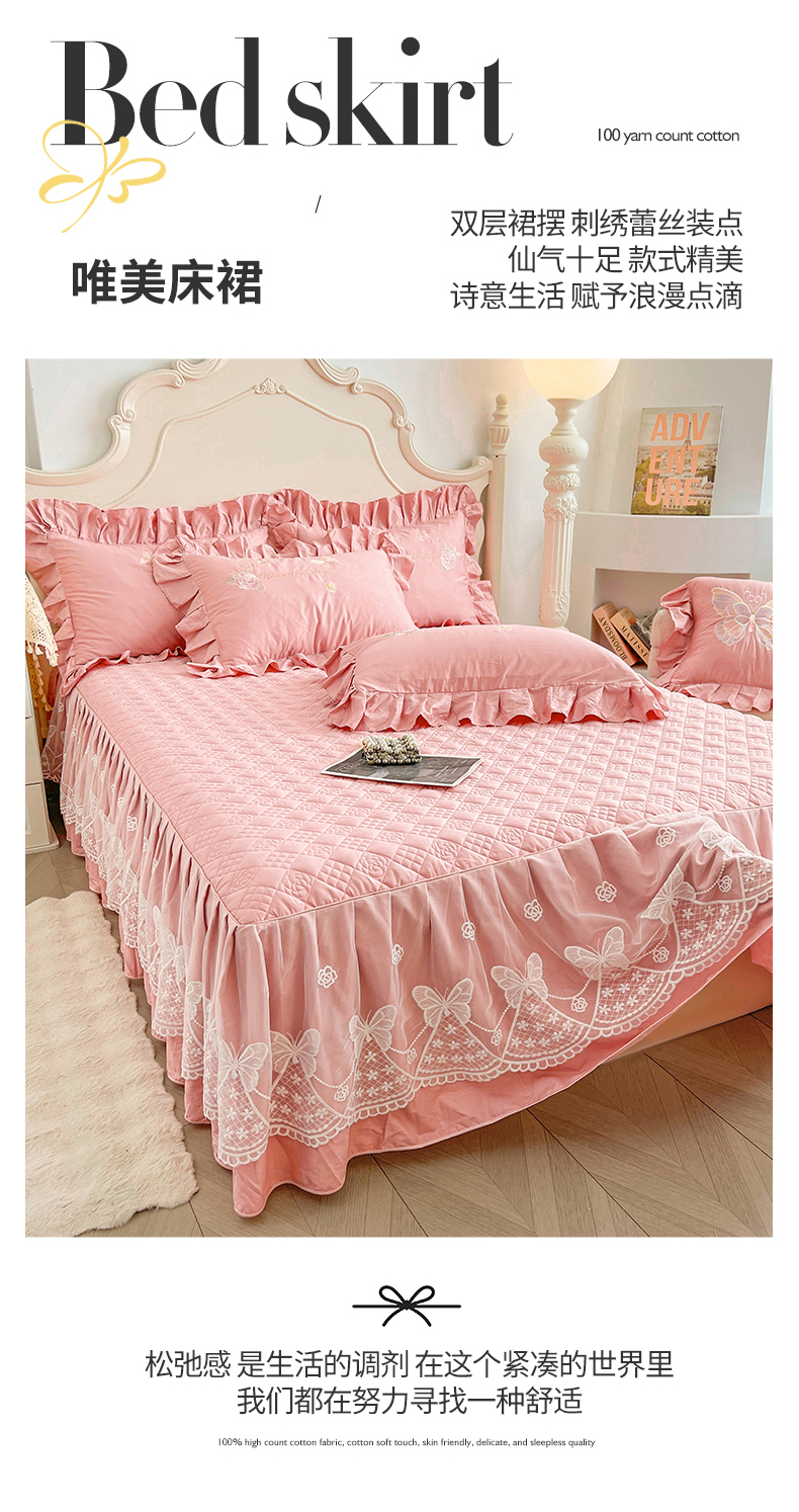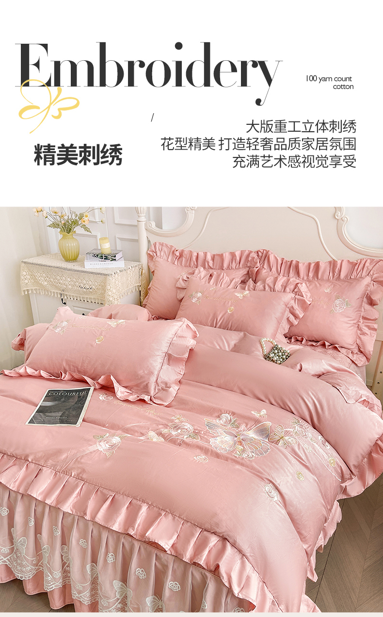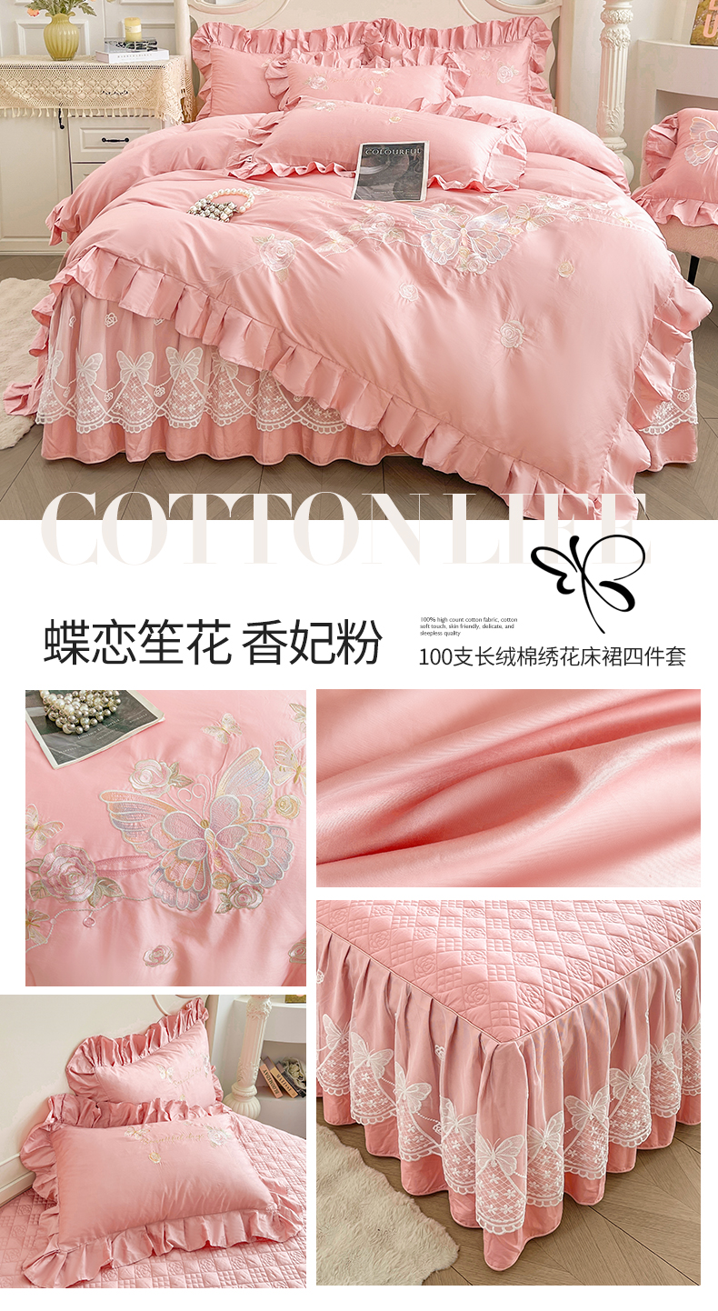 当前位置: 91家纺网 > 商品网购 > 床品套件 > 多件套 > 多件套 > 宜凡家纺 2025新款长绒棉绣花床裙床裙四件套--蝶恋笙花系列 蝶恋笙花 芙绒玉
