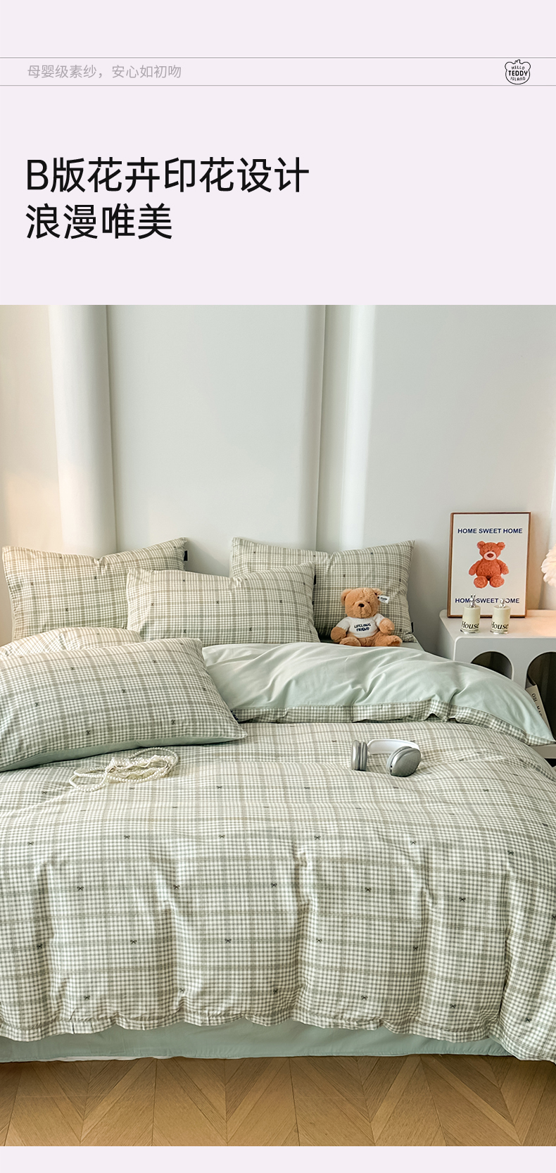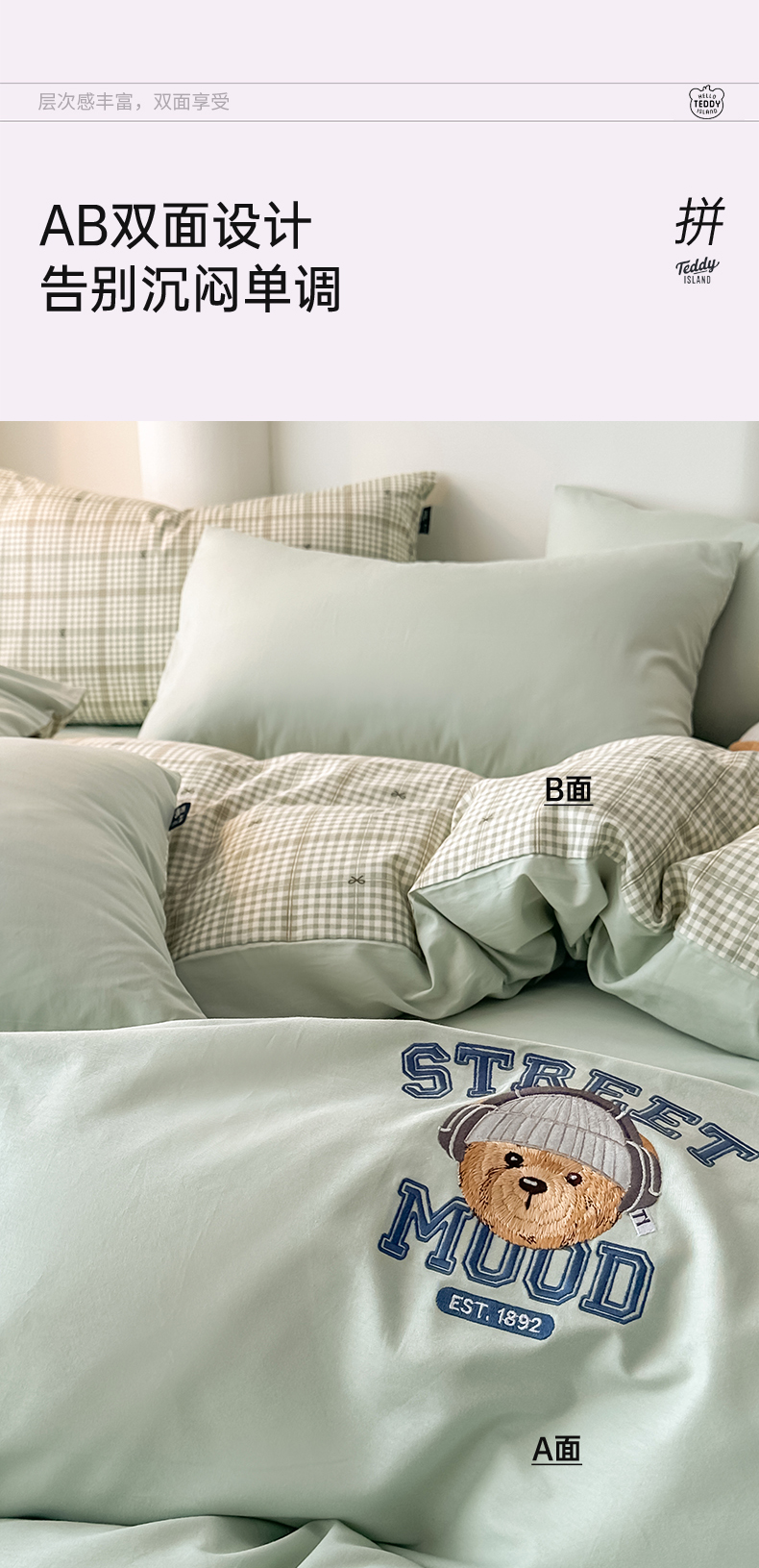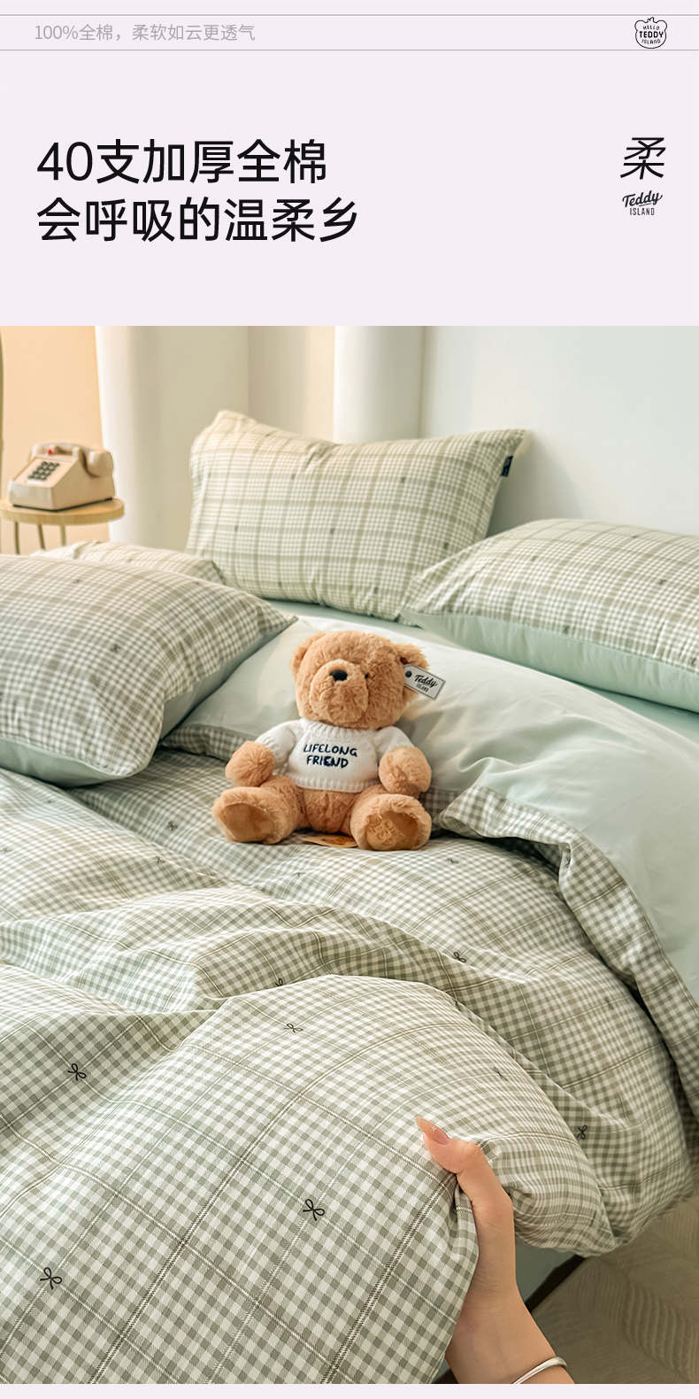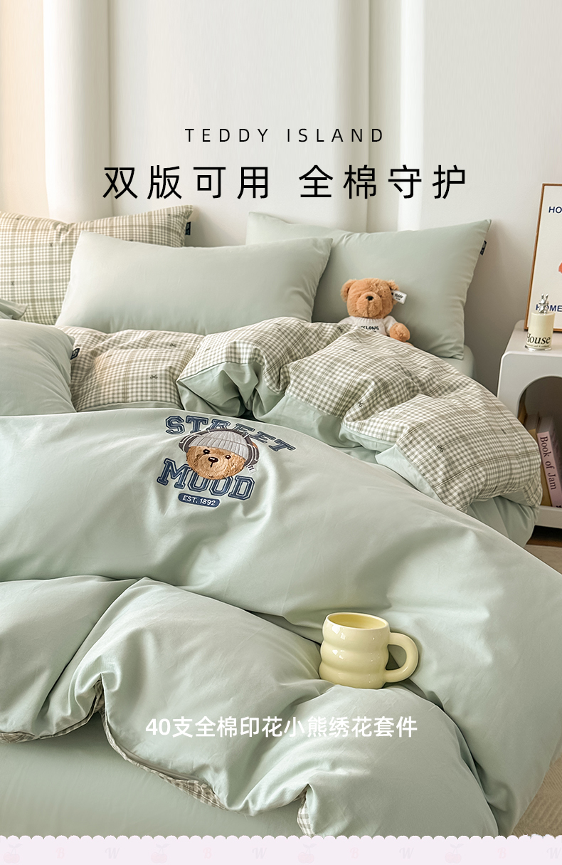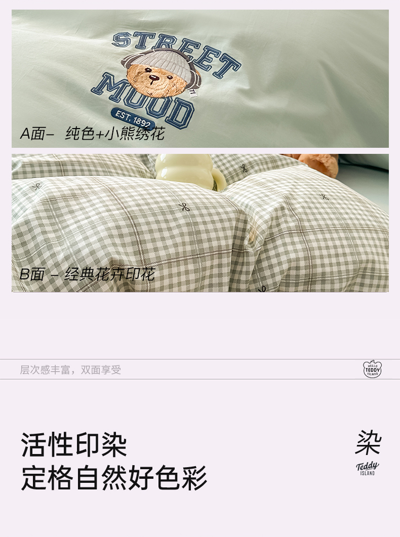 (总)泰迪爱兰Teddy ISLAND 2025新款40支全棉印花刺绣四件套,烟雨花间,印记时光,童年诗篇,挽夏-绿,迪莉娅,守护甜心,素然-米