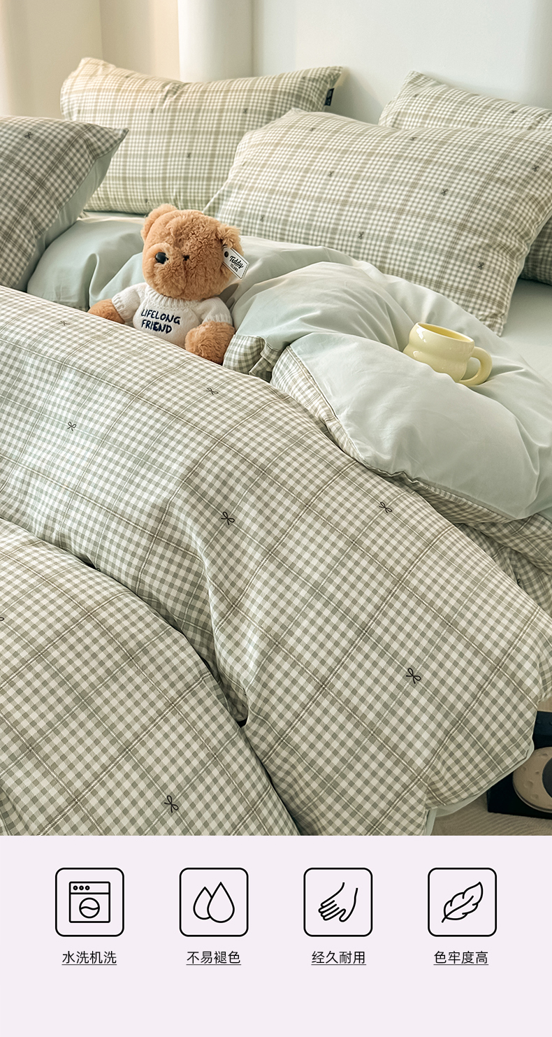 (总)泰迪爱兰Teddy ISLAND 2025新款全棉色织水洗棉格子绣花四件套,粉密格 ,灰密格,浅蓝密格