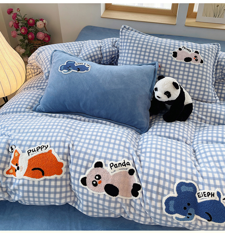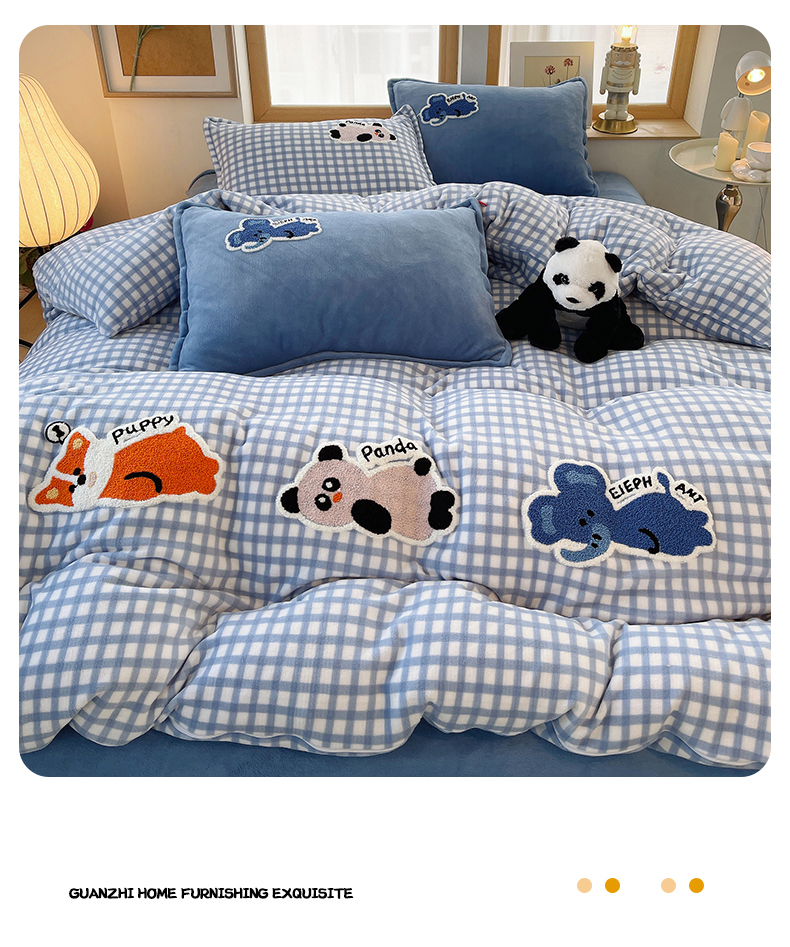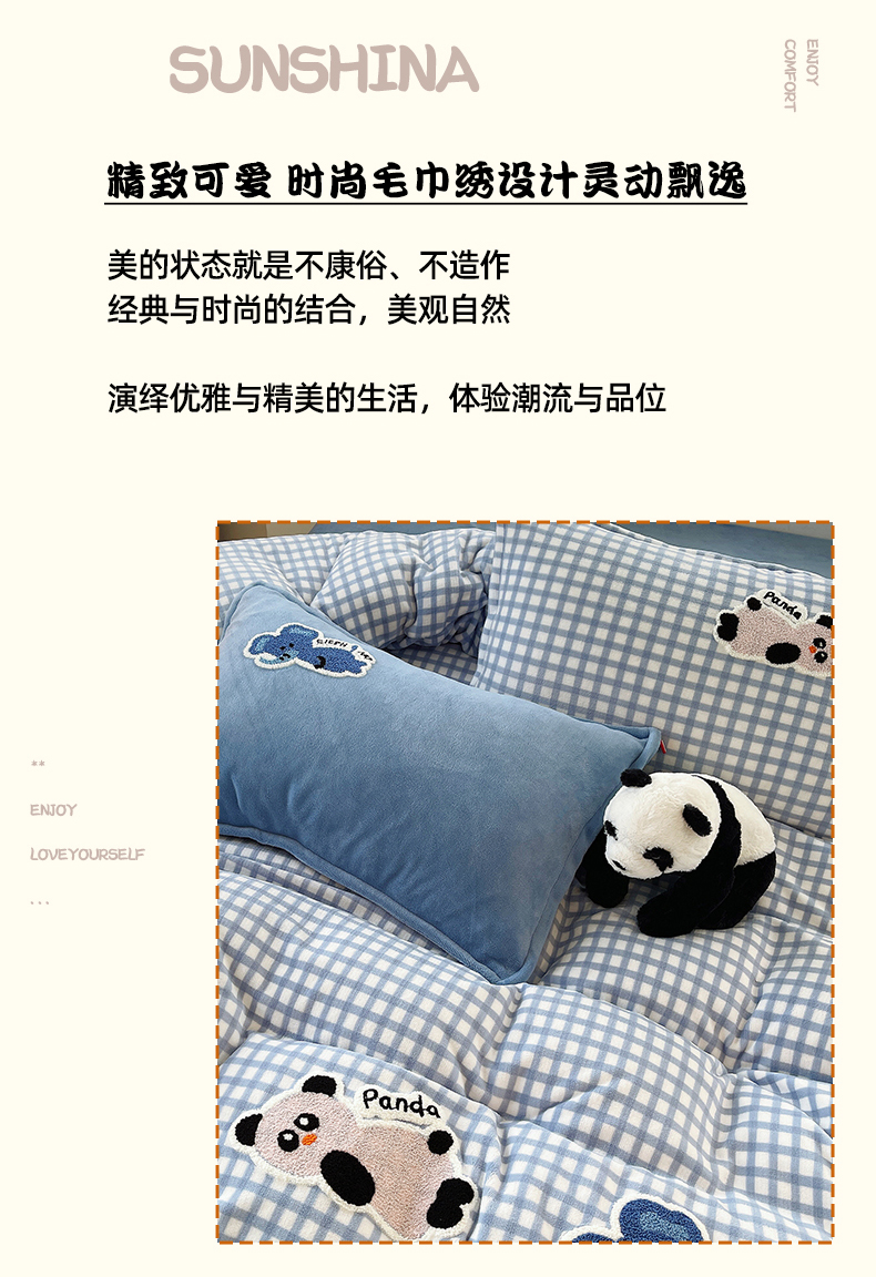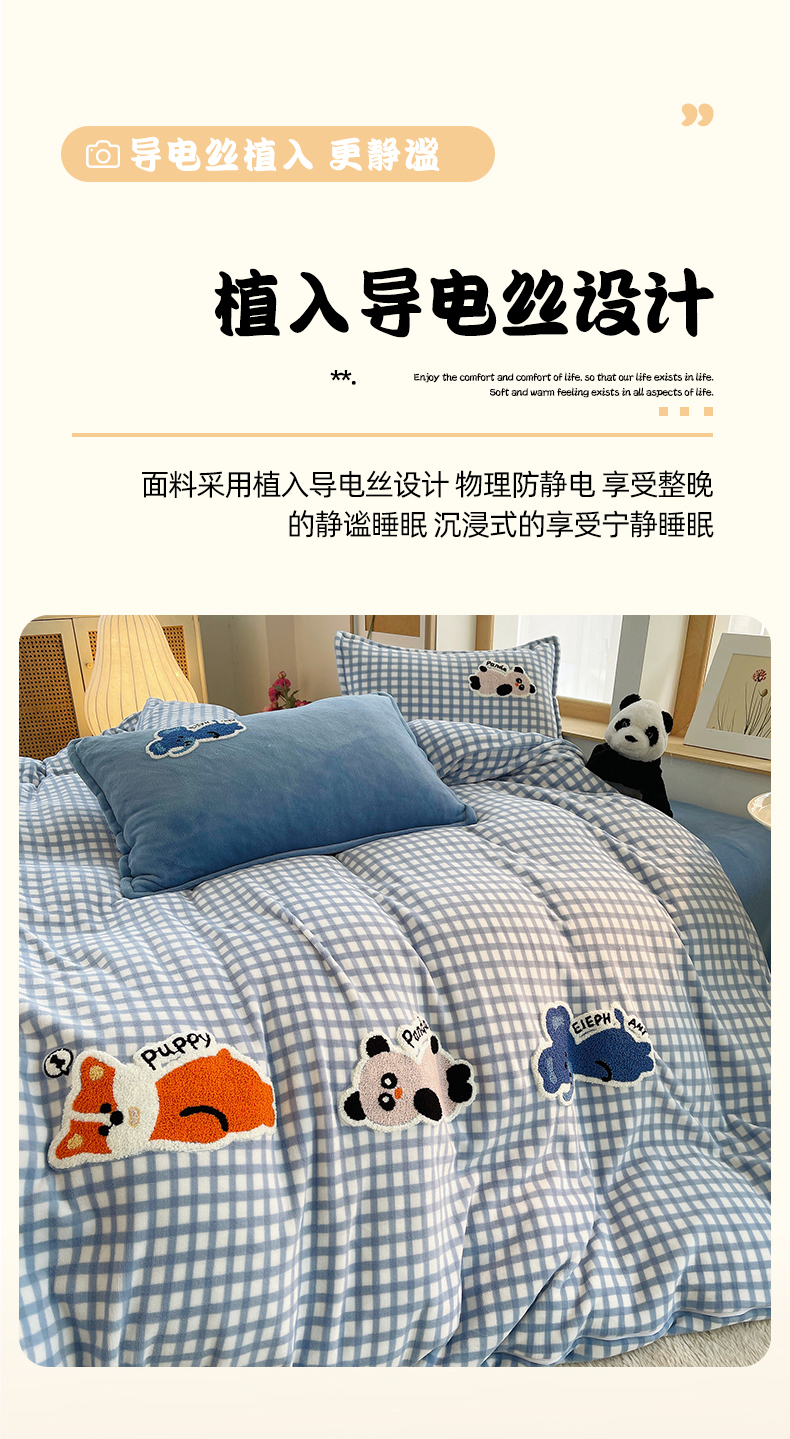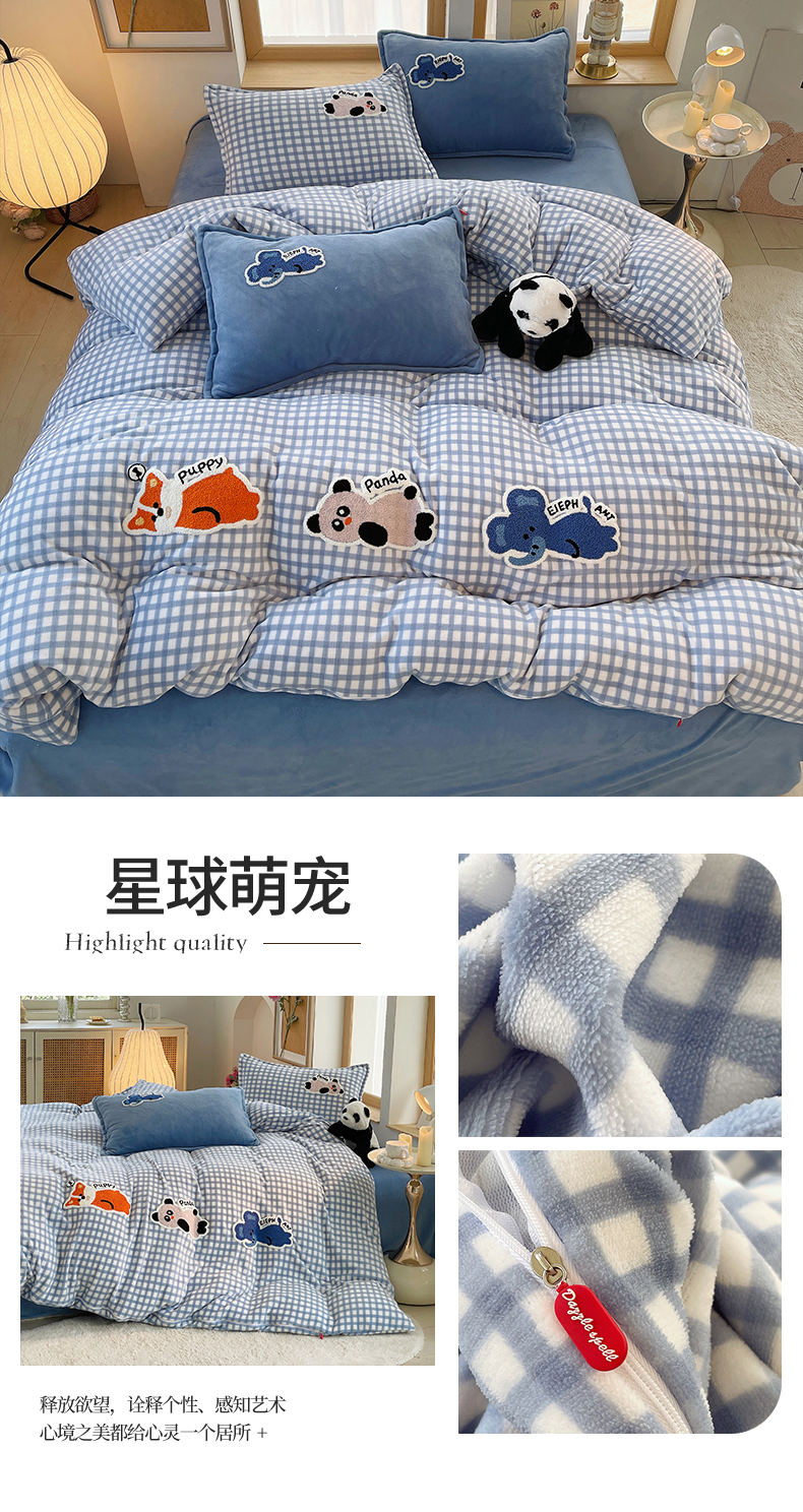 炫拼家纺 2025新款高克重牛奶绒格子卡通毛巾绣加厚四件套-糖宝系列 糖宝-星球萌宠