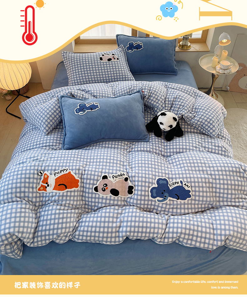 (总)炫拼家纺 2025新款高克重牛奶绒格子卡通毛巾绣加厚四件套-糖宝系列,糖宝-半勺清风,糖宝-喵了个咪,糖宝-甜豆女孩,糖宝-汪星日记,糖宝-星球萌宠,糖宝-元气小猪
