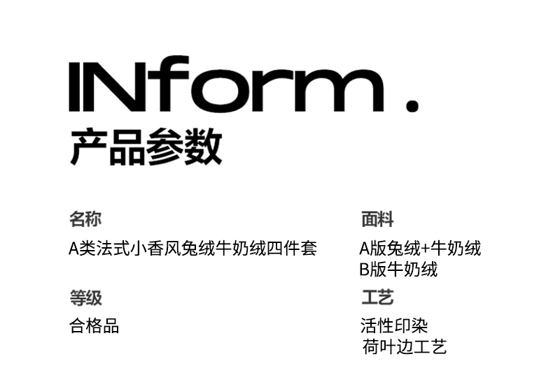 商品名称:子曰 2025新款A类法式轻奢赫本风兔绒牛奶绒四件套美拉德系 法式-爱魅