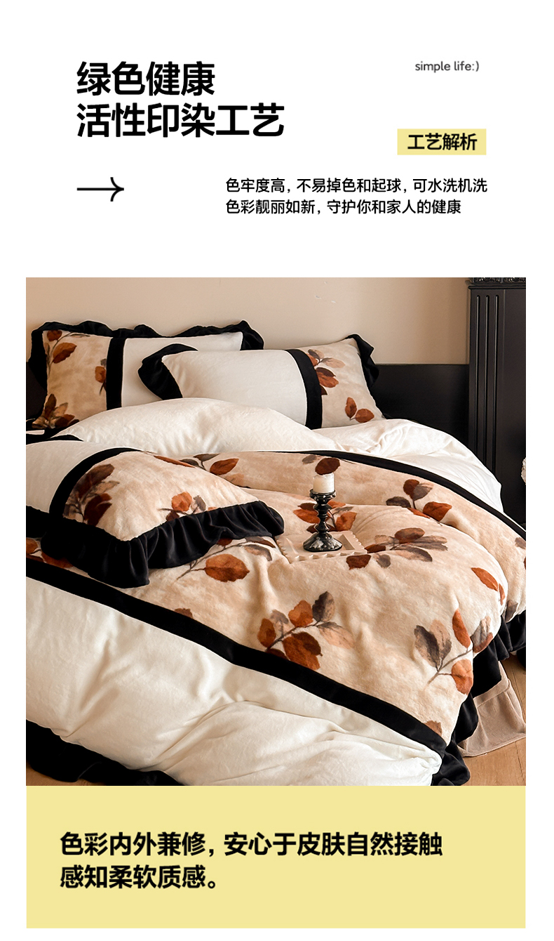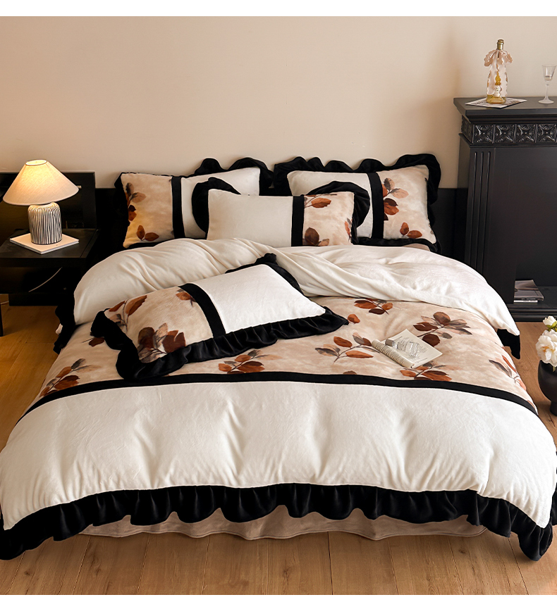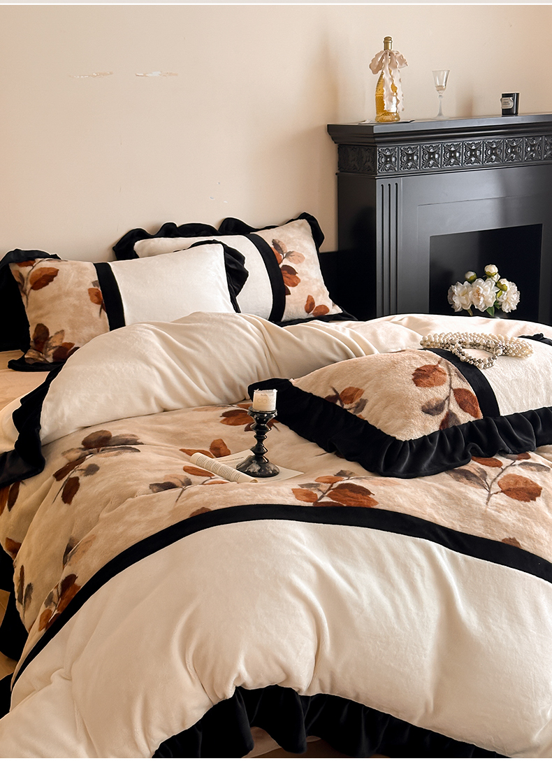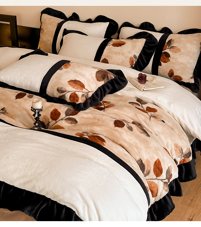 (总)子曰 2025新款雕花加厚牛奶绒宽边工艺款四件套-小香风,小香风-咖,小香风-粉,小香风-绿,小香风-米白,小香风-紫