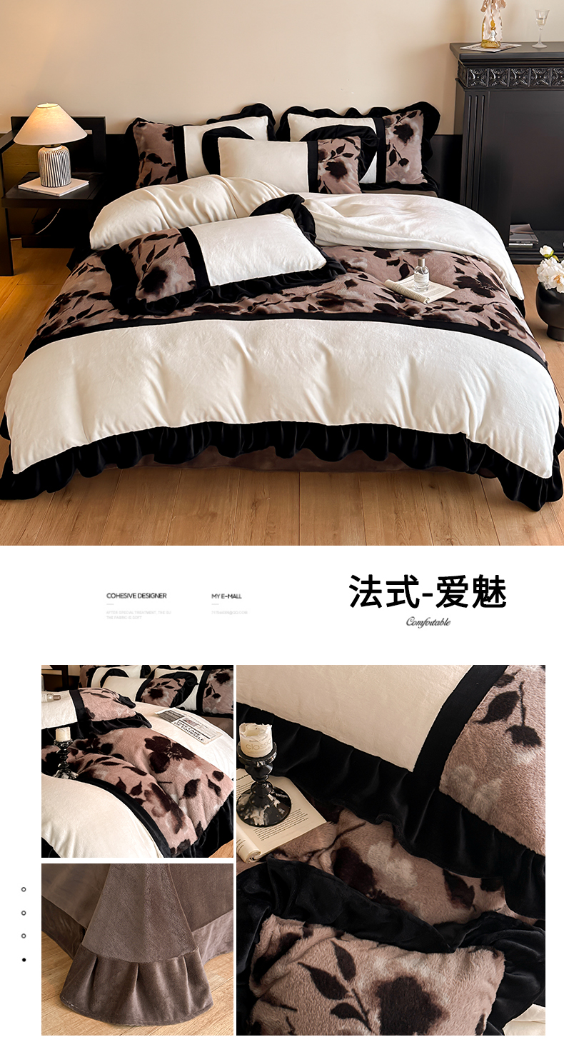 子曰 2025新款A类法式轻奢赫本风兔绒牛奶绒四件套美拉德系 法式-爱魅