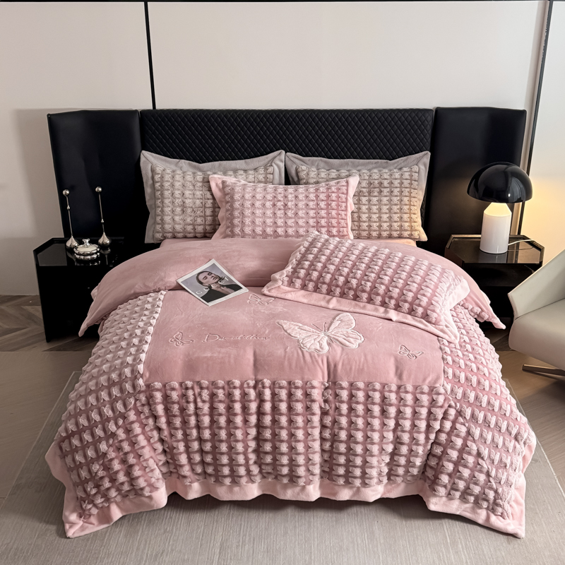 优姿家纺 2025新品兔毛绣花保暖四件套-蝶梦芳华 蝶梦芳华-豆沙
