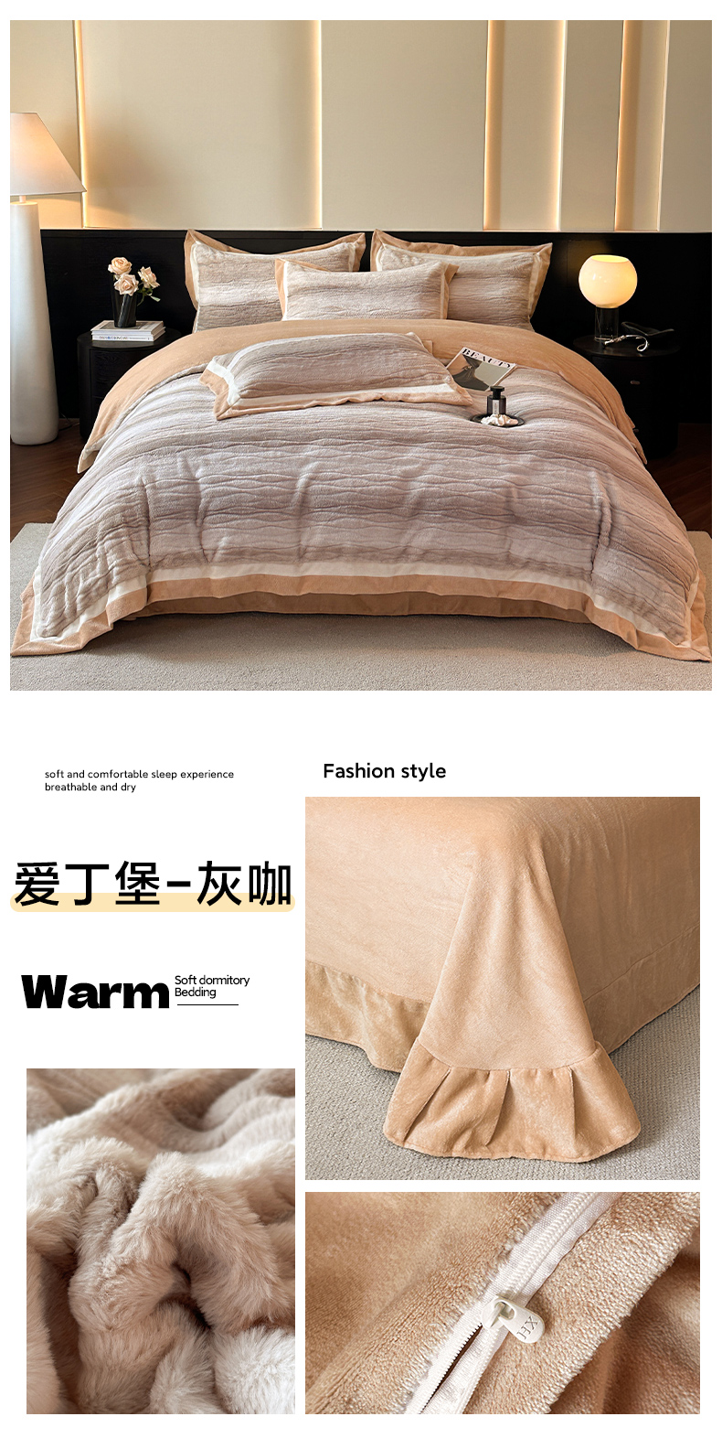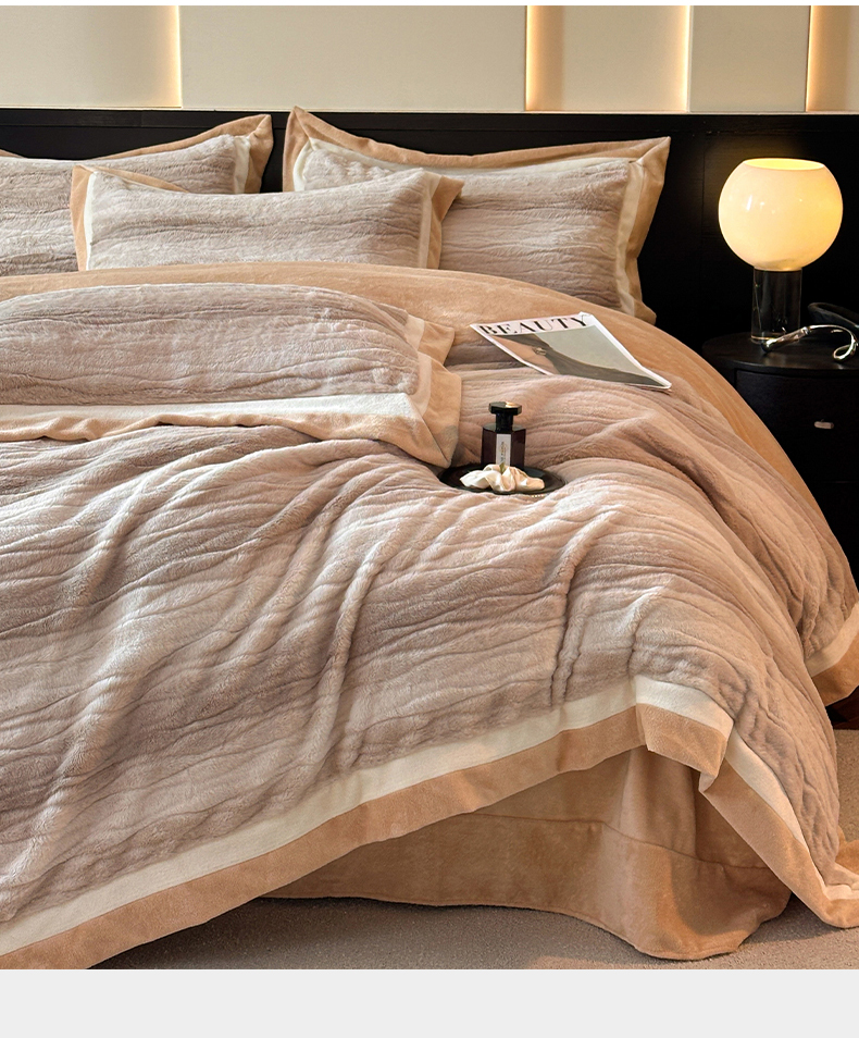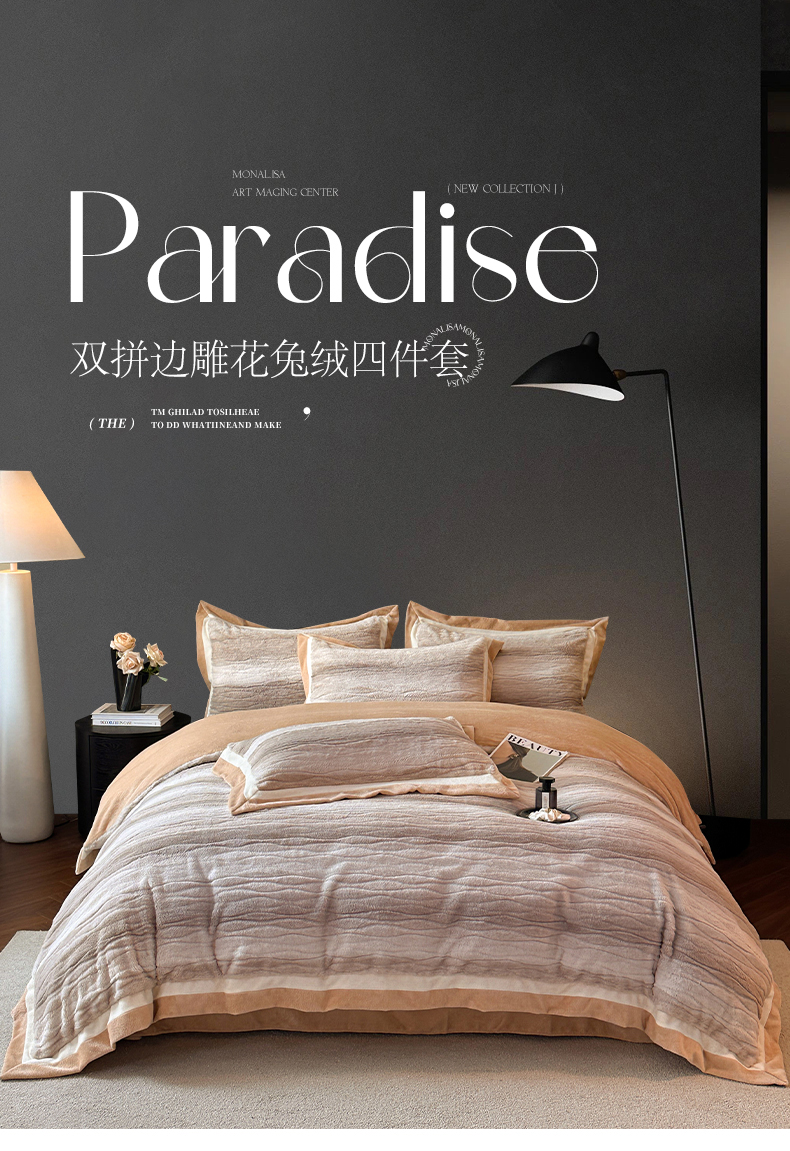 当前位置: 91家纺网 > 商品网购 > 床品套件 > 四件套 > 其它四件套 > 绘萱家居 2025新款亲肤舒适双拼边雕花兔毛绒四件套-爱丁堡 爱丁堡-灰咖