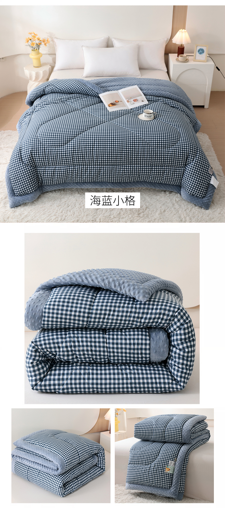 • 91家纺网 家纺一手货源 找家纺 云家 2025新款豆豆绒被子被芯夏凉被空调被四季被 海蓝小格