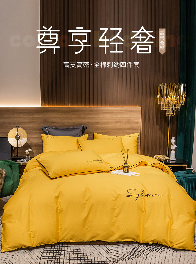 当前位置: 91家纺网 > 商品网购 > 床品套件 > 四件套 > 全棉普通四件套 > 小叮当家纺仓储工厂店 2025新款(热买家秀不断货)40s贡缎长绒棉纯棉字母款全棉四件套轻奢床上用品 姜黄