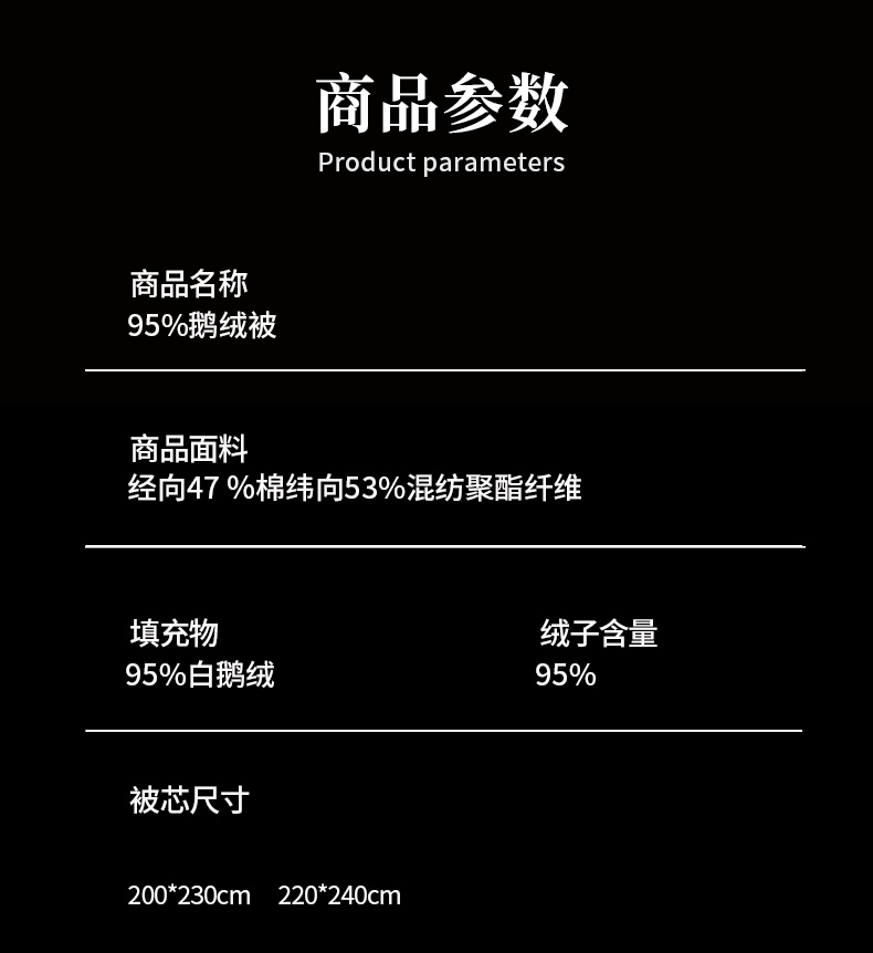 220-240 填充1200克95白鹅绒 秋冬被 | ¥1880.00 |