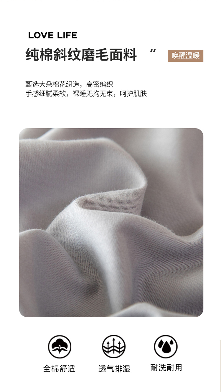 商品名称:八十八家纺 2025新款纯棉加厚磨毛四件套及单品系列-单被套 加厚中灰