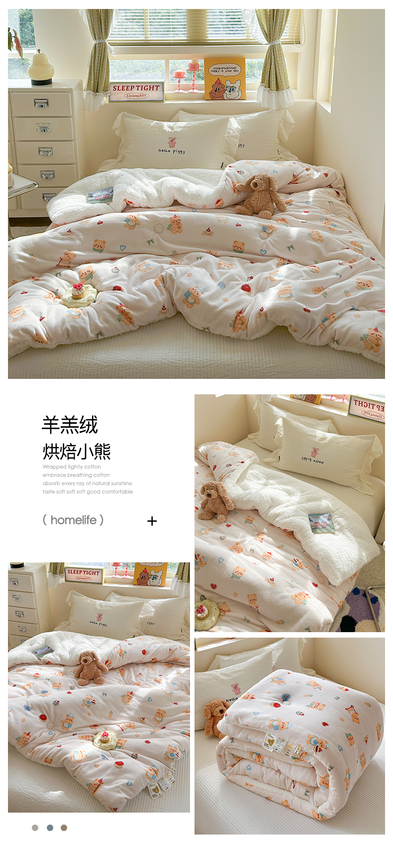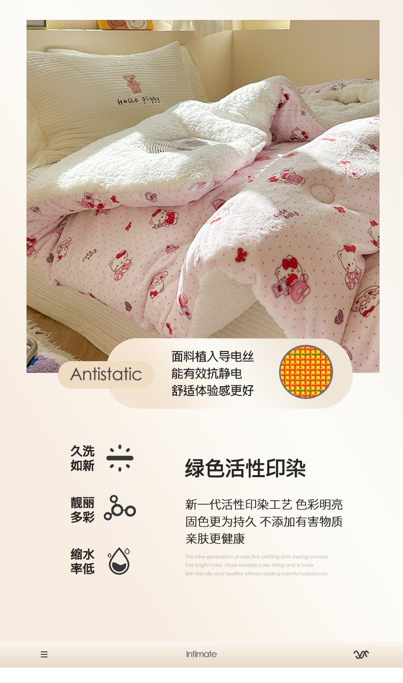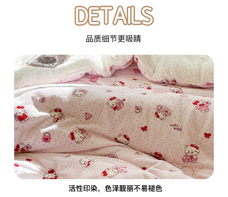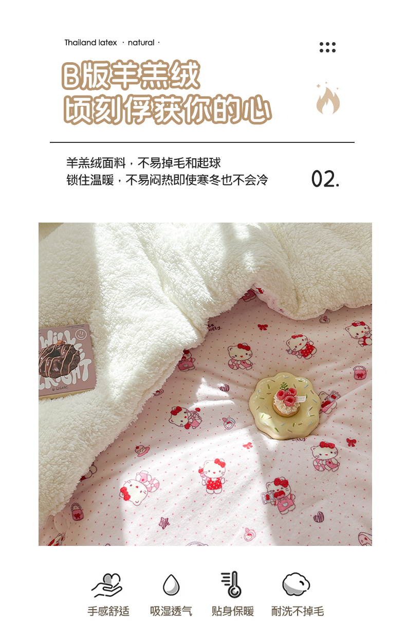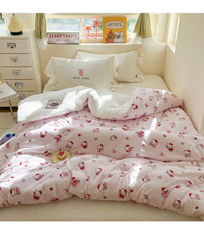 商品名称:寐居家纺 2025新款牛奶绒+羊羔绒被子被芯 甜心粉粉猫