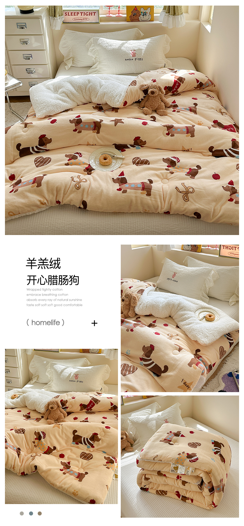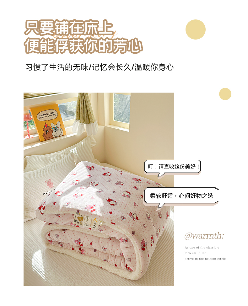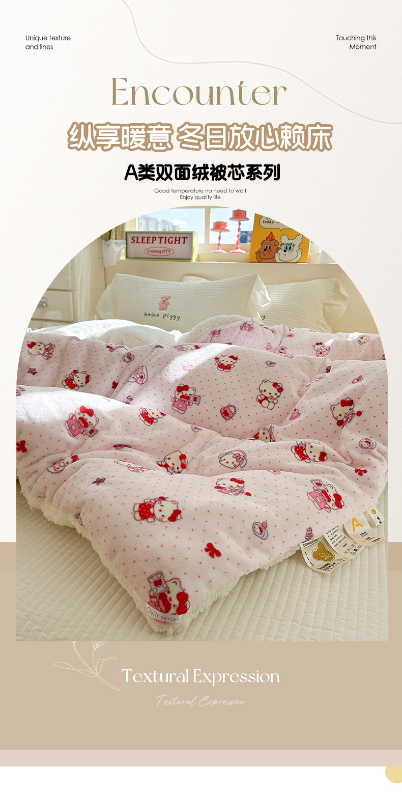 寐居家纺 2025新款牛奶绒+羊羔绒被子被芯 甜心粉粉猫