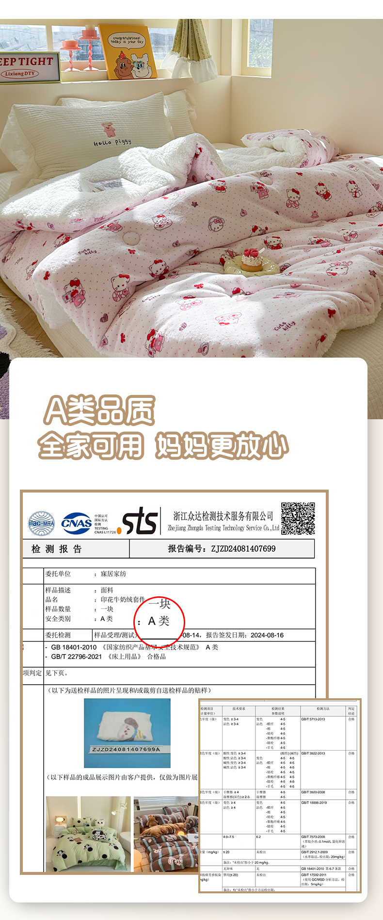 (总)寐居家纺 2025新款贴布绣高克重牛奶绒四件套,安吉拉喵,查理狗,粉糯kitty,皮皮布布
