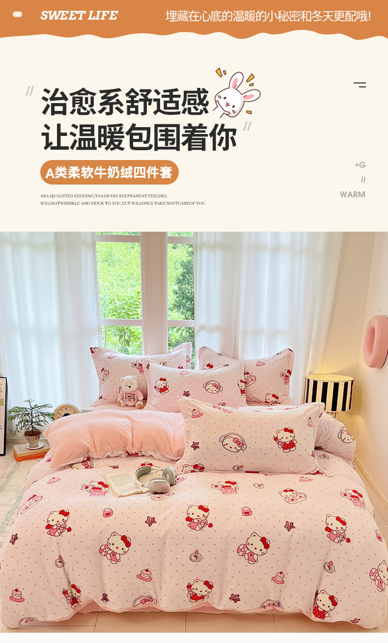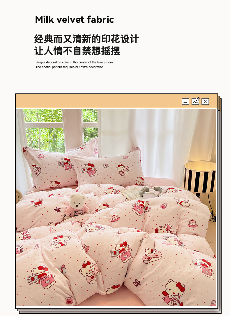 当前位置: 91家纺网 > 商品网购 > 床品套件 > 四件套 > 牛奶绒四件套 > 寐居家纺 2025新款印花牛奶绒四件套 甜心粉粉猫