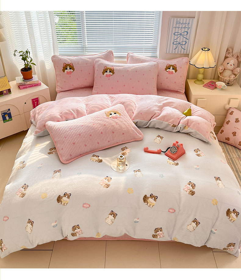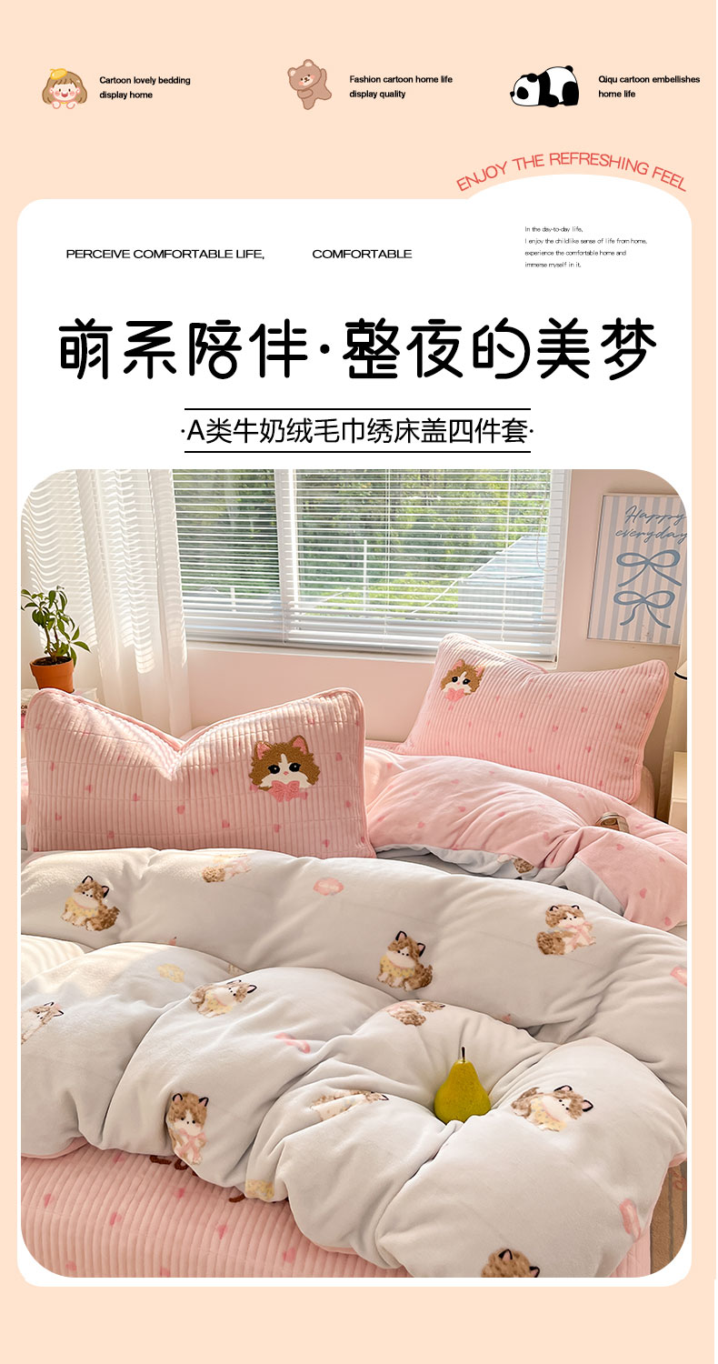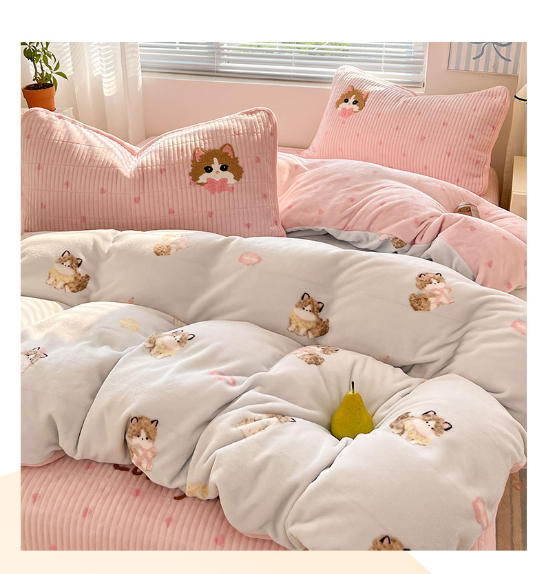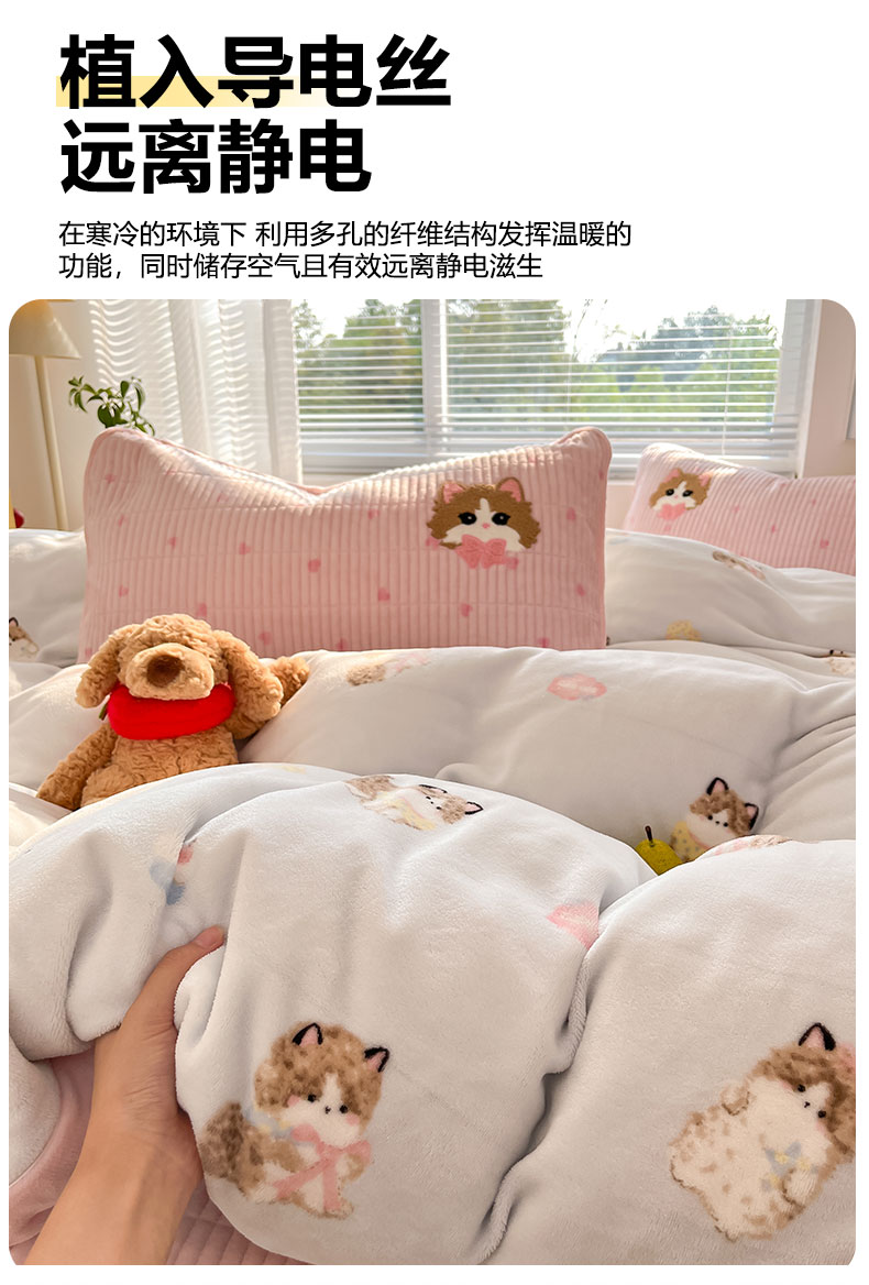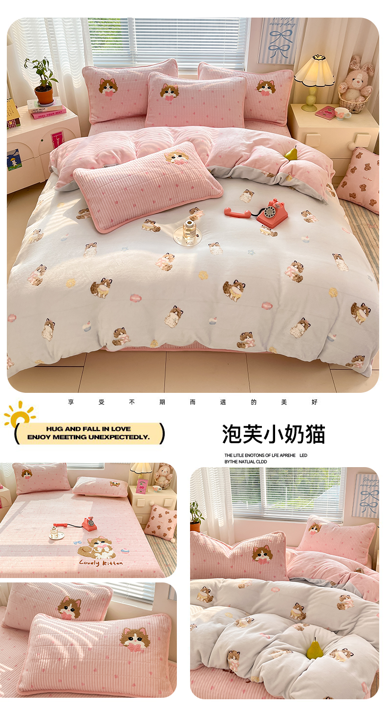 当前位置: 91家纺网 > 商品网购 > 床品套件 > 四件套 > 牛奶绒四件套 > 寐居家纺 2025新款A类牛奶绒床盖款四件套 泡芙小奶猫