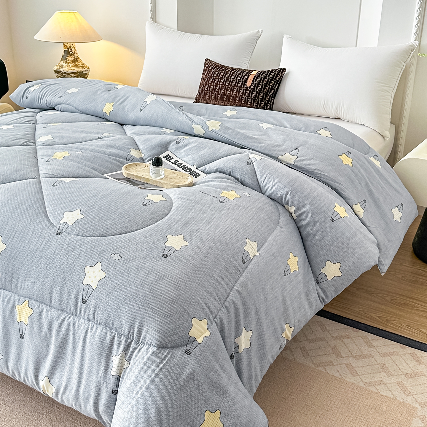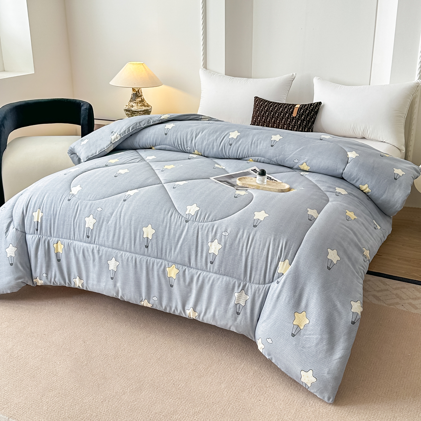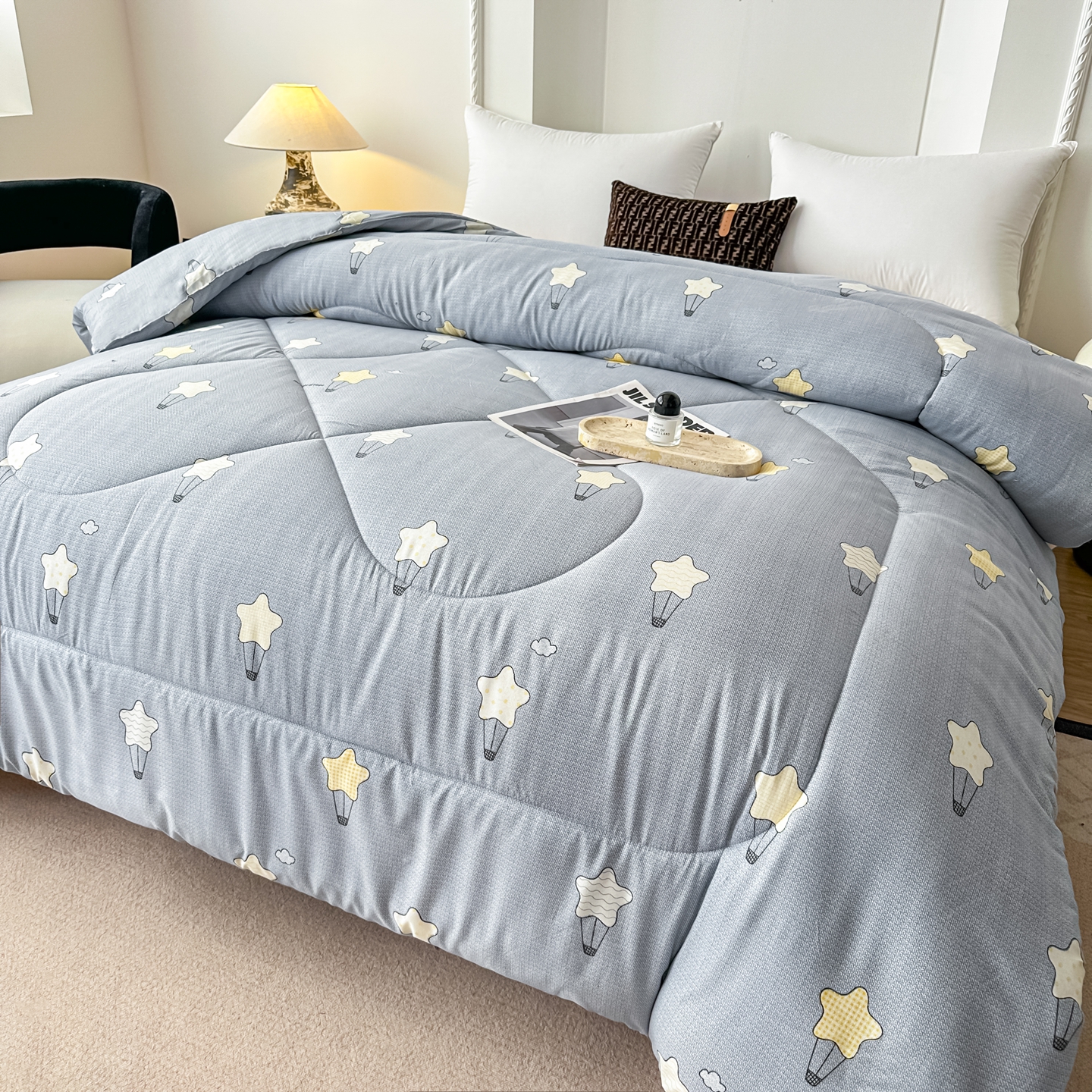 • 91家纺网 家纺一手货源 找家纺 好欣怡家纺 2026新款洛卡棉冬被学生被四季被仿棉被芯 灰色星星