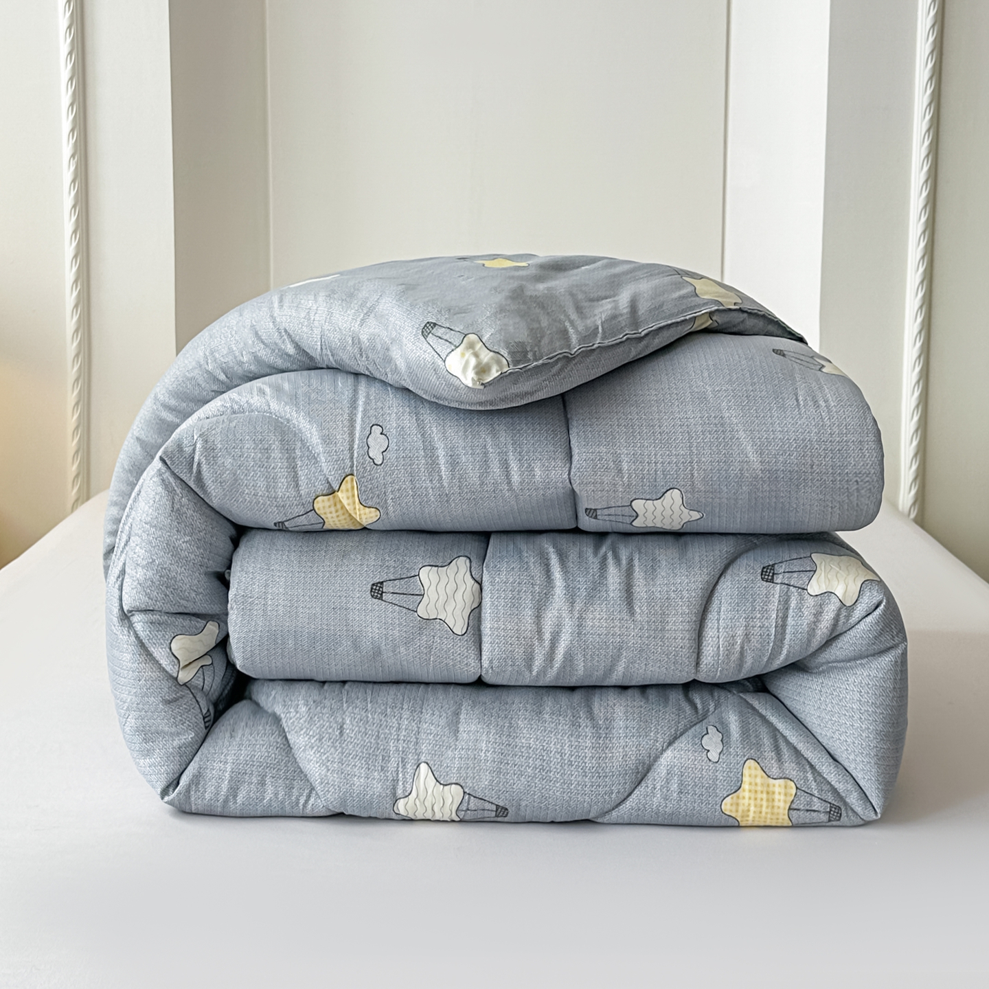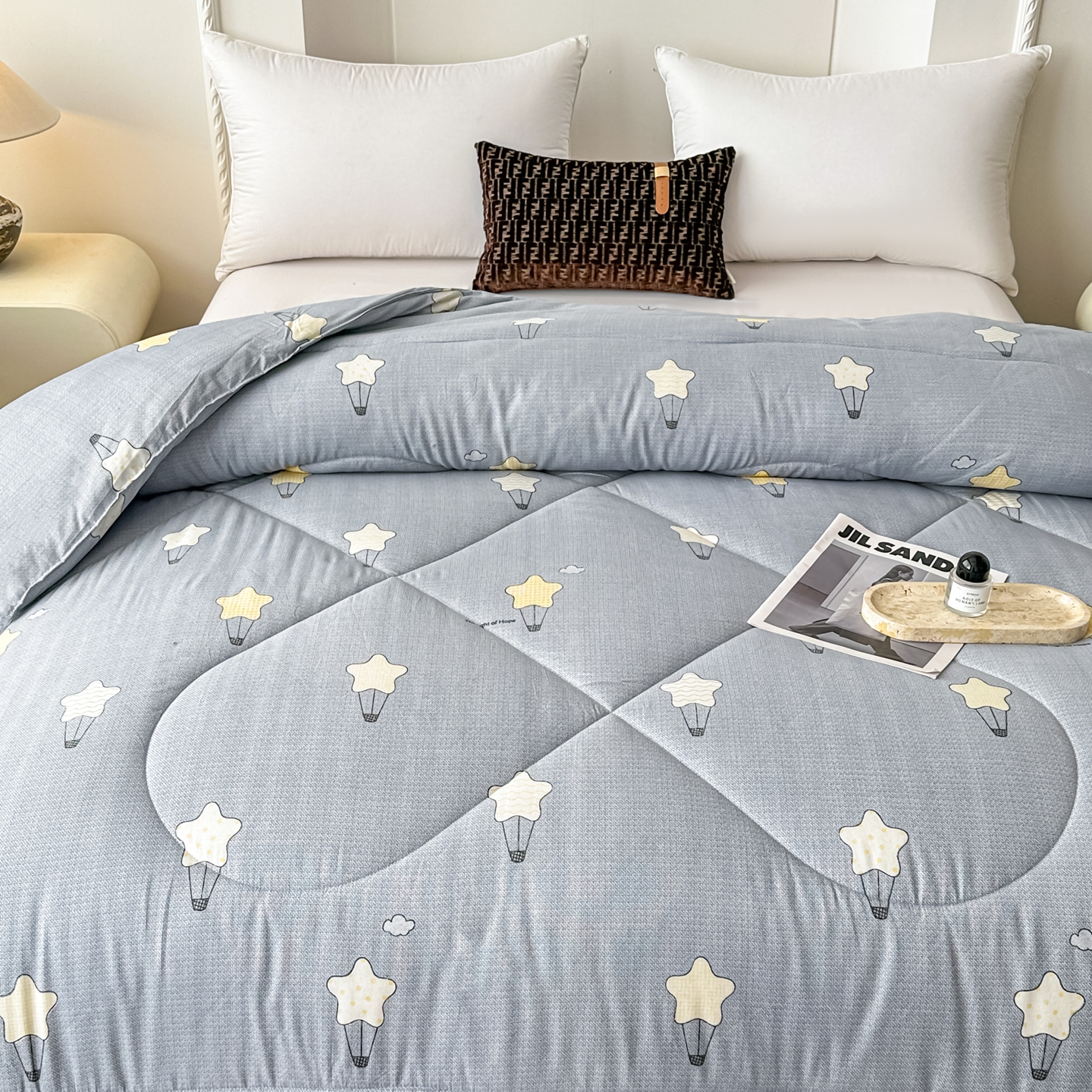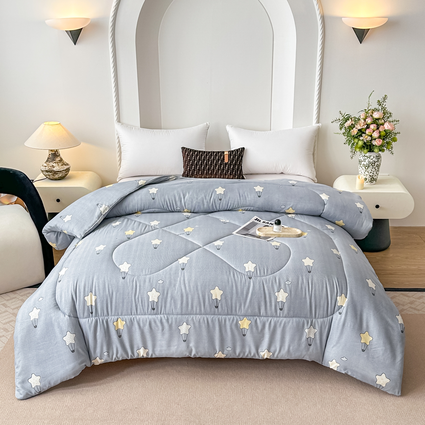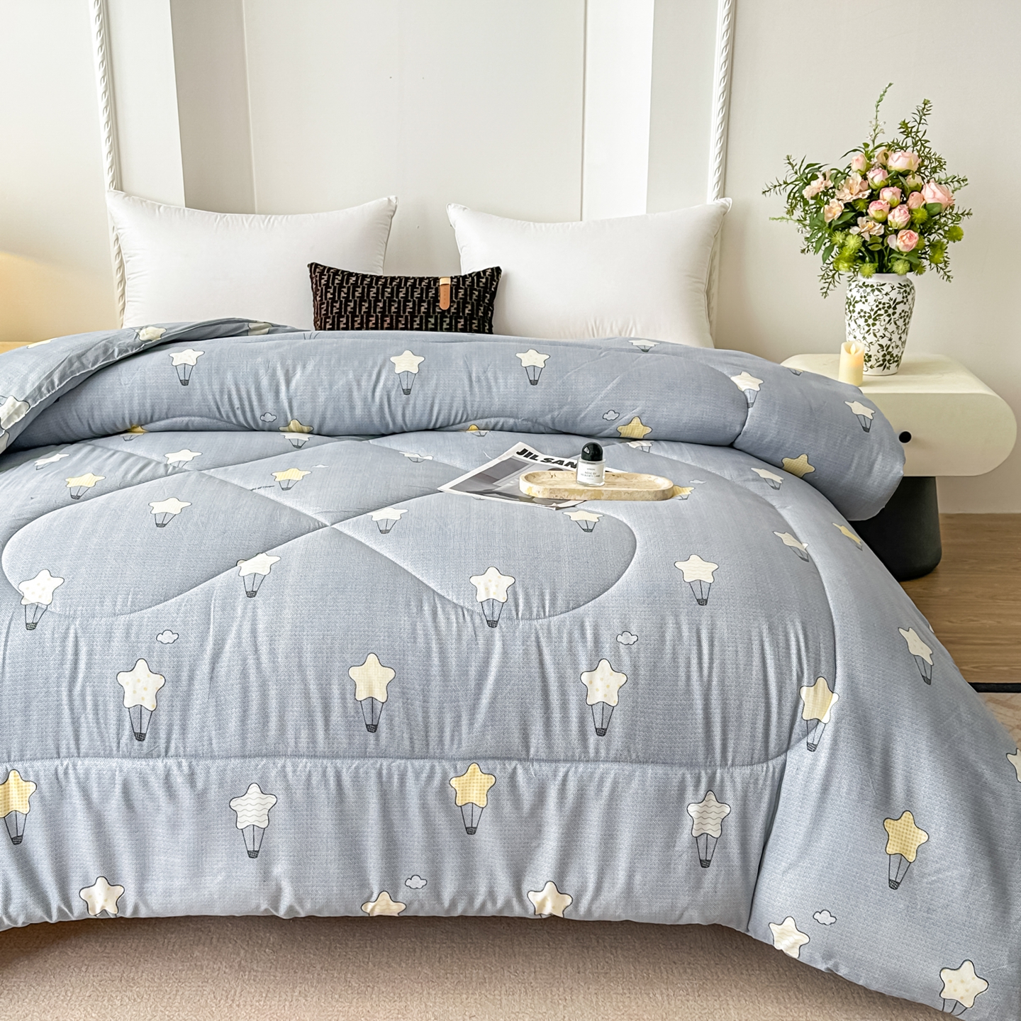 • 91家纺网 家纺一手货源 找家纺 好欣怡家纺 2026新款洛卡棉冬被学生被四季被仿棉被芯 灰色星星
