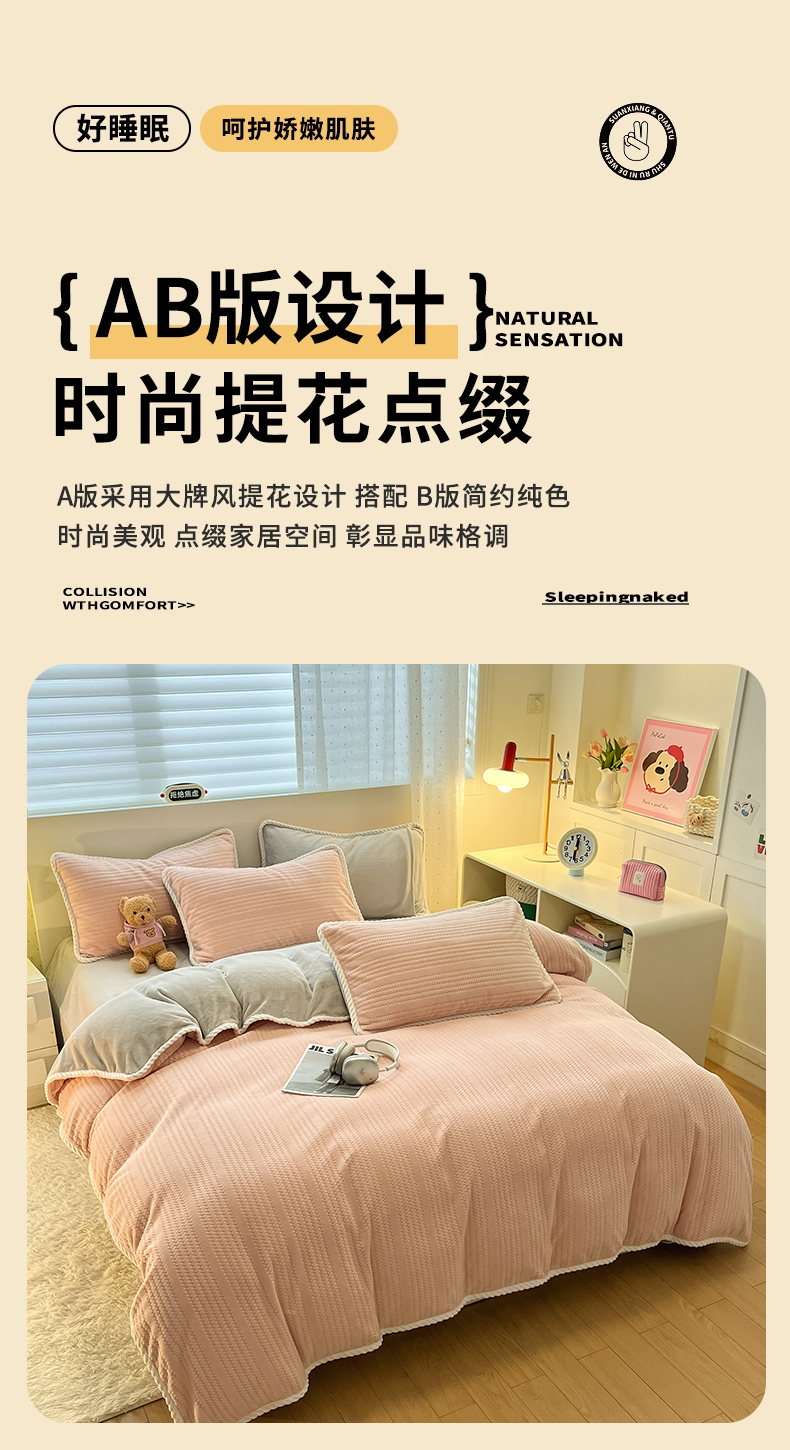 当前位置: 91家纺网 > 商品网购 > 床品套件 > 四件套 > 牛奶绒四件套 > 小叮当家纺仓储工厂店 2025新款亲肤舒适成品提花包边牛奶绒四件套-提花 提花-高级灰