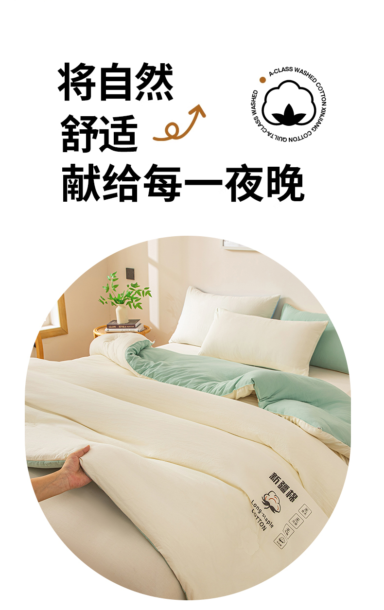 • 91家纺网 家纺一手货源 找家纺 小叮当家纺仓储工厂店 2025新款A类水洗棉新疆棉花全棉纯棉被无印风冬被加厚保暖被子被芯四季通用 新疆棉花被-白拼绿