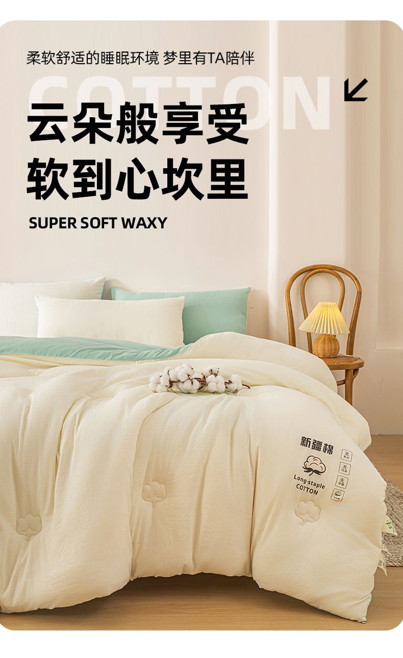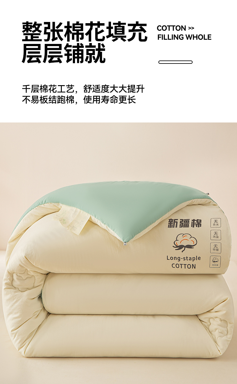 当前位置: 91家纺网 > 商品网购 > 被子 > 冬被 > 小叮当家纺仓储工厂店 2025新款A类水洗棉新疆棉花全棉纯棉被无印风冬被加厚保暖被子被芯四季通用 新疆棉花被-白拼绿