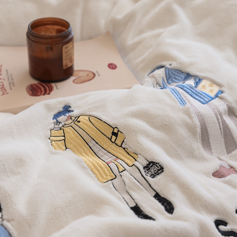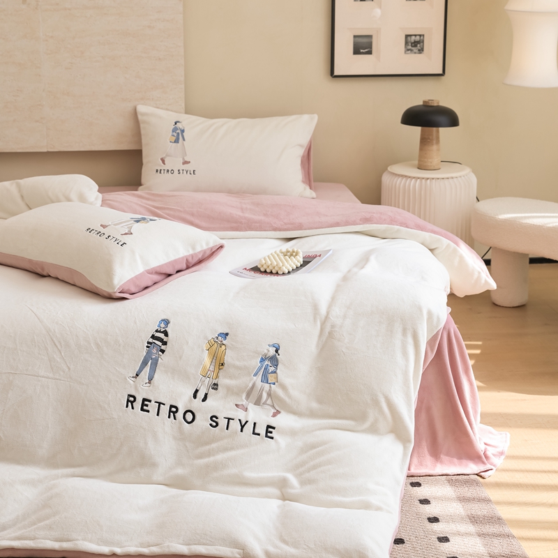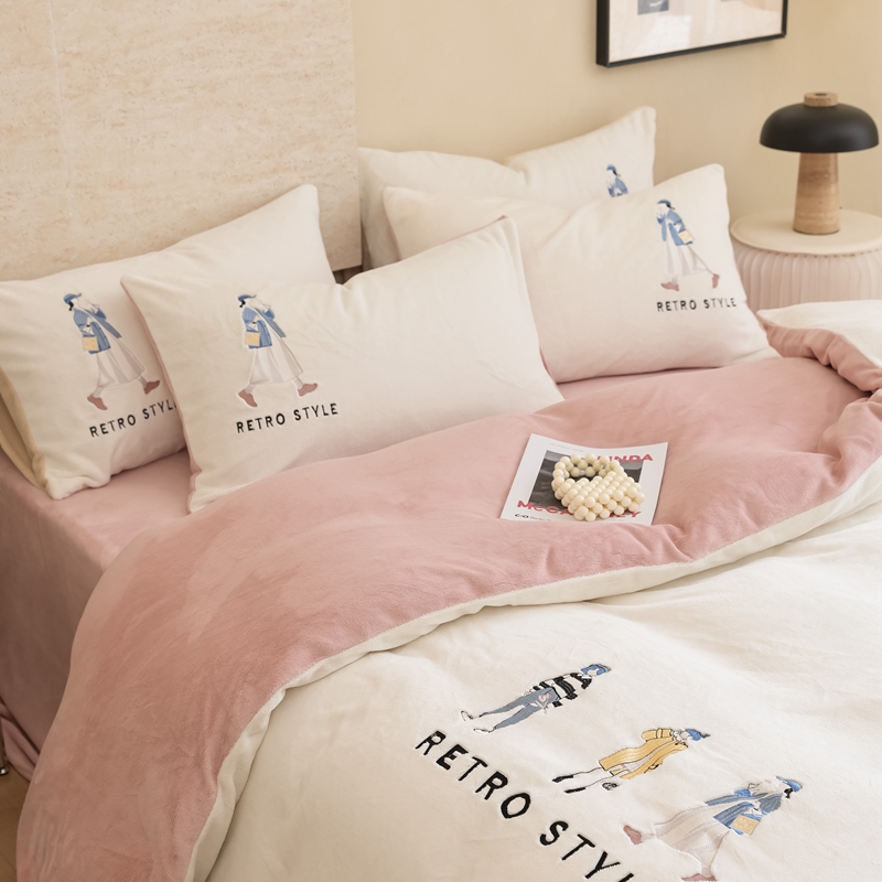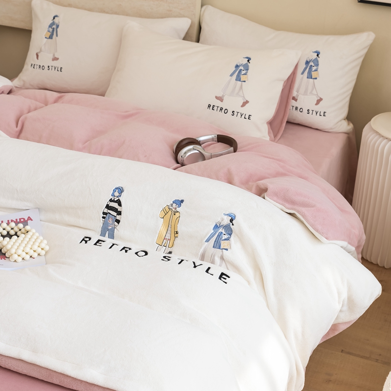 121【牛奶绒刺绣四件套】2025新款毛毯被子四件套单件床单被套床笠珊瑚绒牛奶绒冬被法兰绒兔毛绒刺绣男孩-Boy系列场景二 baby-橘粉