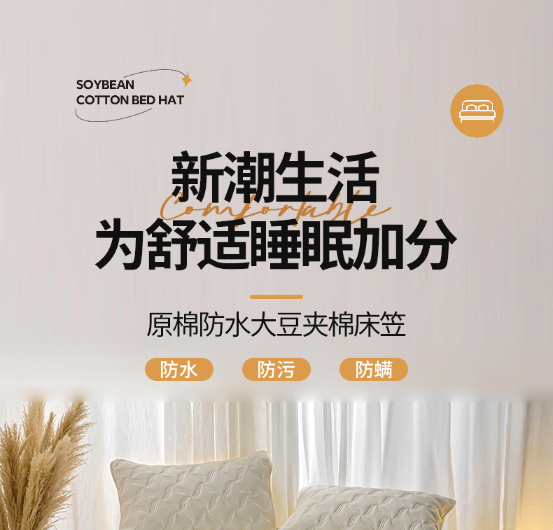 • 91家纺网 家纺一手货源 找家纺 小叮当家纺仓储工厂店 2025新款A类原棉大豆防水床笠单品床笠单件单床笠隔尿夹棉床笠床垫保护罩外贸跨境 爱恋-米白