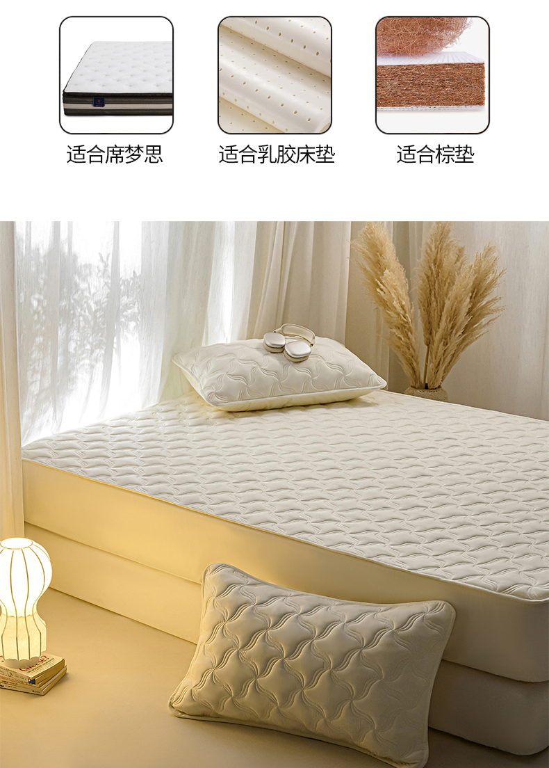 当前位置: 91家纺网 > 商品网购 > 床上用品 > 床笠 > 小叮当家纺仓储工厂店 2025新款A类原棉大豆防水床笠单品床笠单件单床笠隔尿夹棉床笠床垫保护罩外贸跨境 爱恋-米白