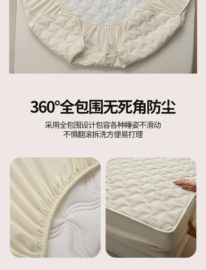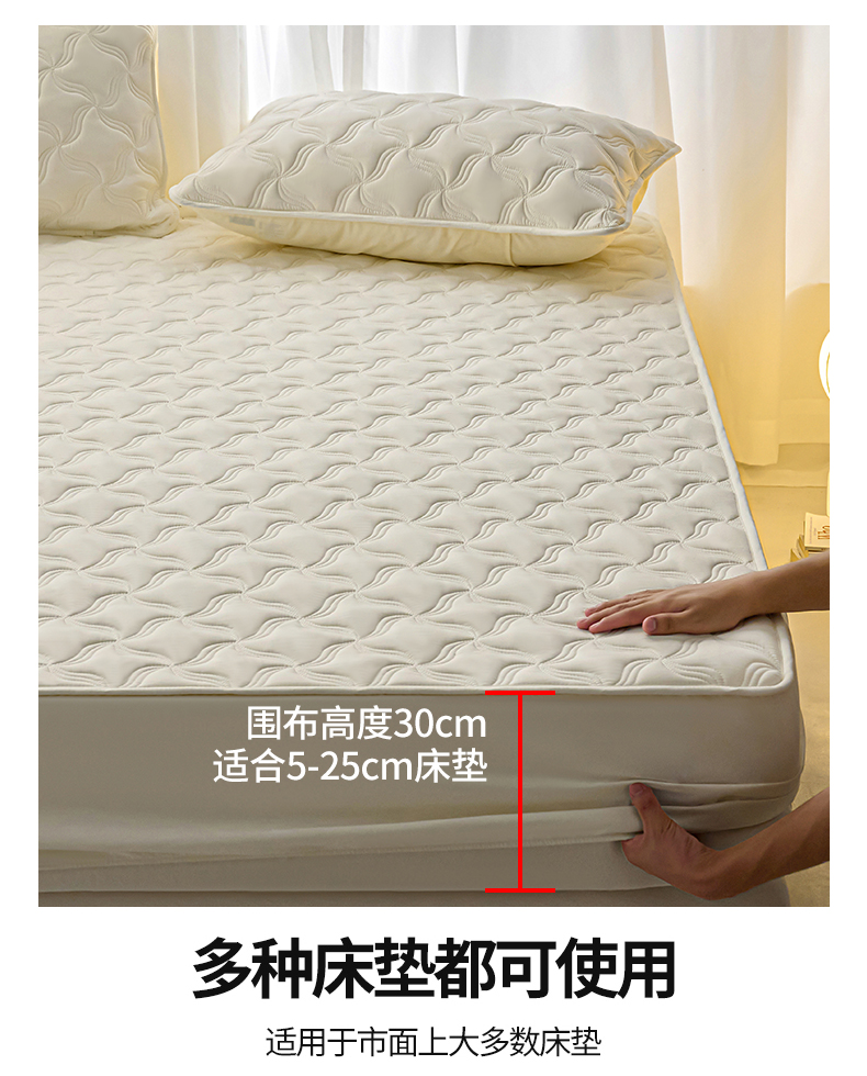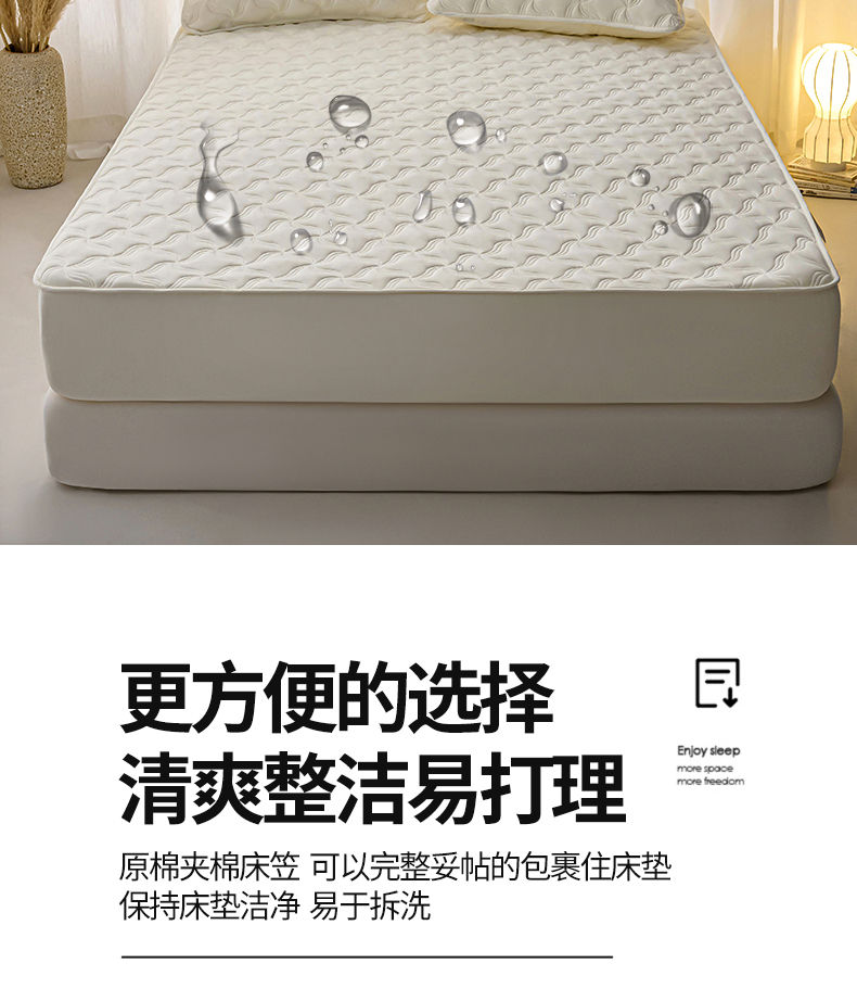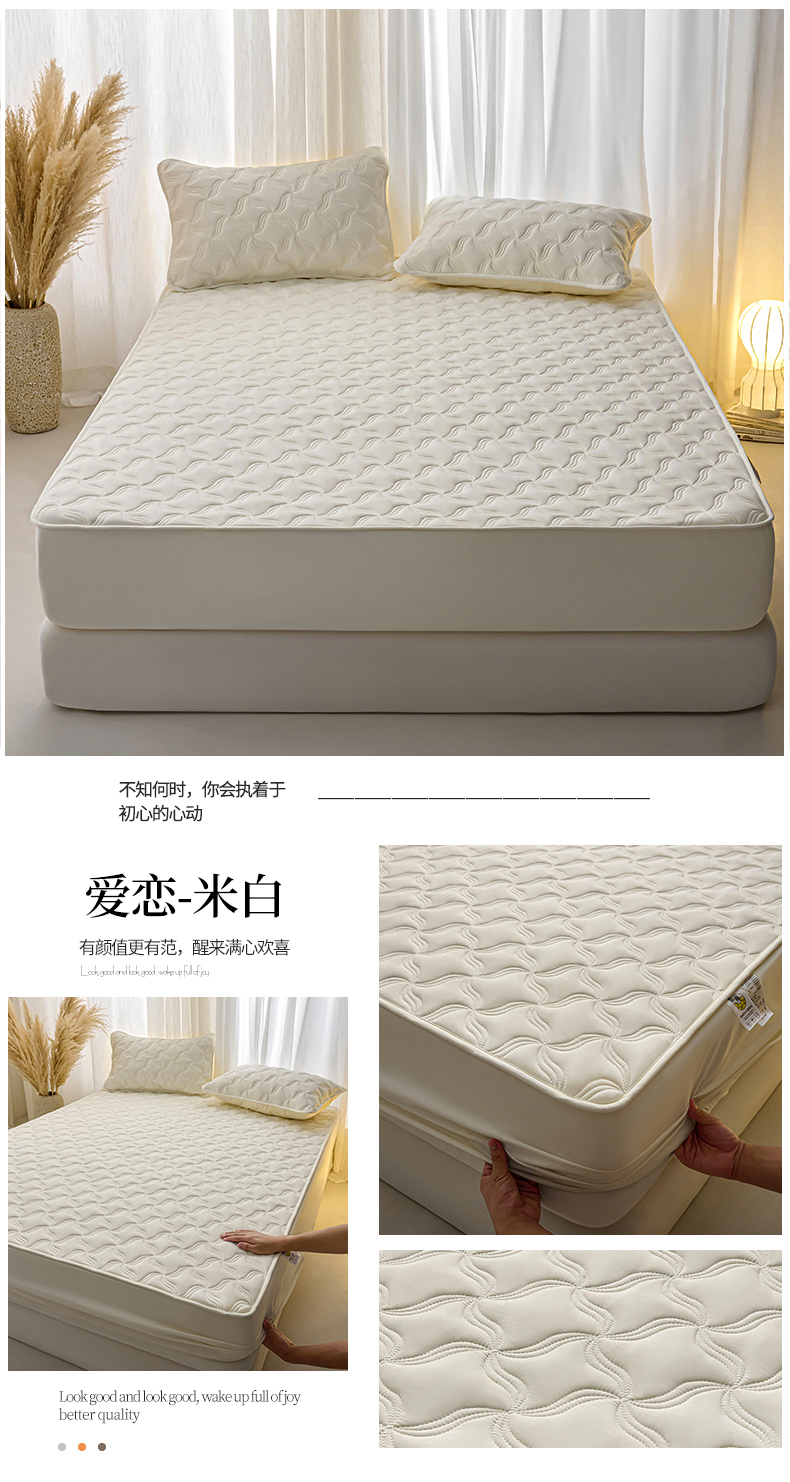 小叮当家纺仓储工厂店 2025新款A类原棉大豆防水床笠单品床笠单件单床笠隔尿夹棉床笠床垫保护罩外贸跨境 爱恋-米白