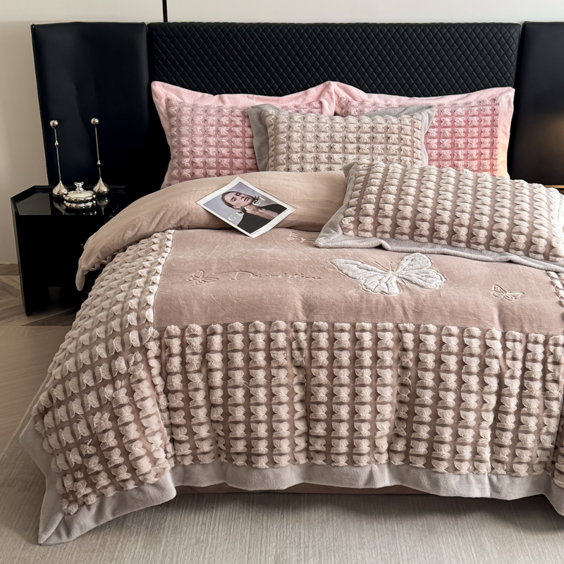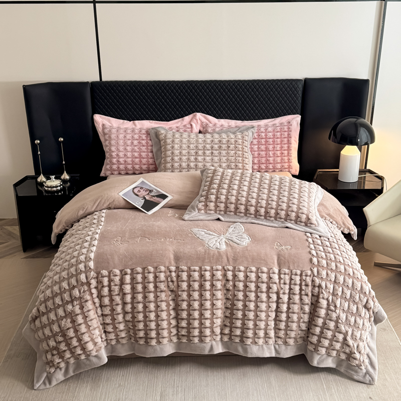 (总)保罗圣迪奥 2025新款350克剪花牛奶绒四件套-三拼角蝴蝶