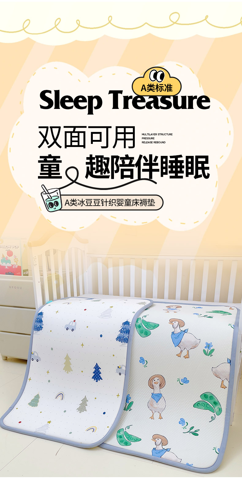 当前位置: 91家纺网 > 商品网购 > 床垫/床褥 > 普通床垫 > 小叮当家纺仓储工厂店 2025新款A版冰豆豆B版针织婴童双面两用床垫床褥 小鸭子