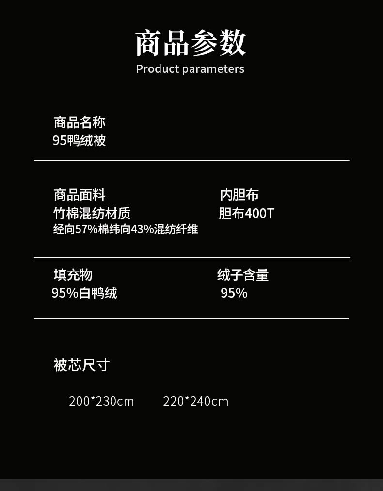95白鸭绒200*230填充1400克冬被 | ¥1390.00 |