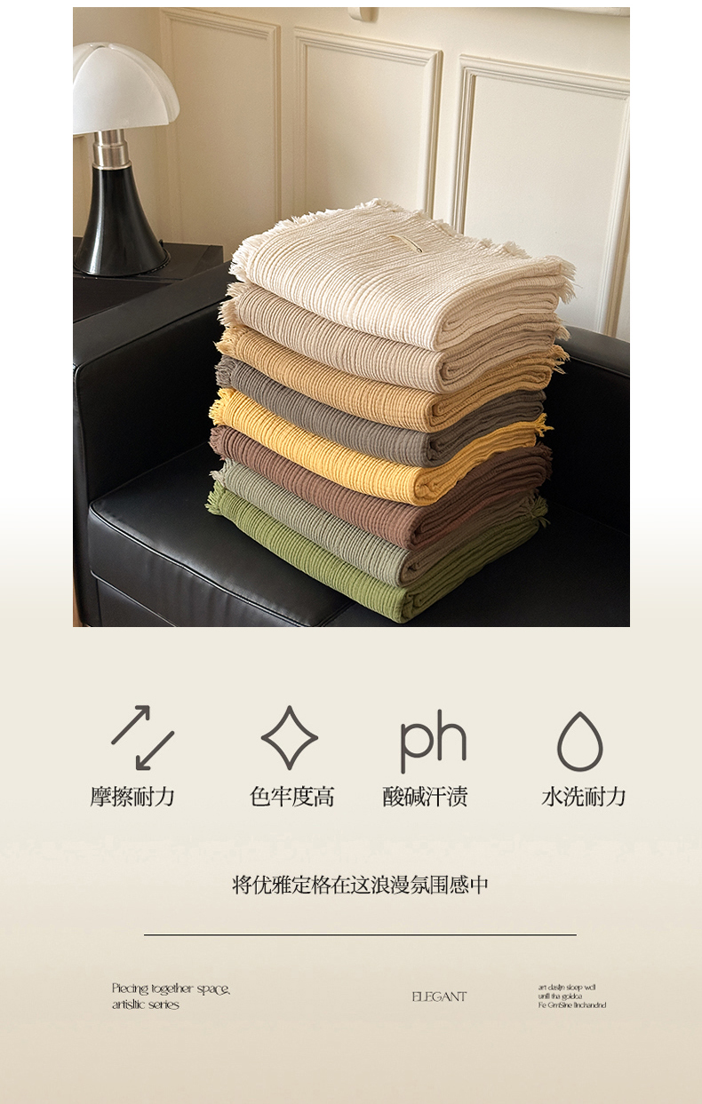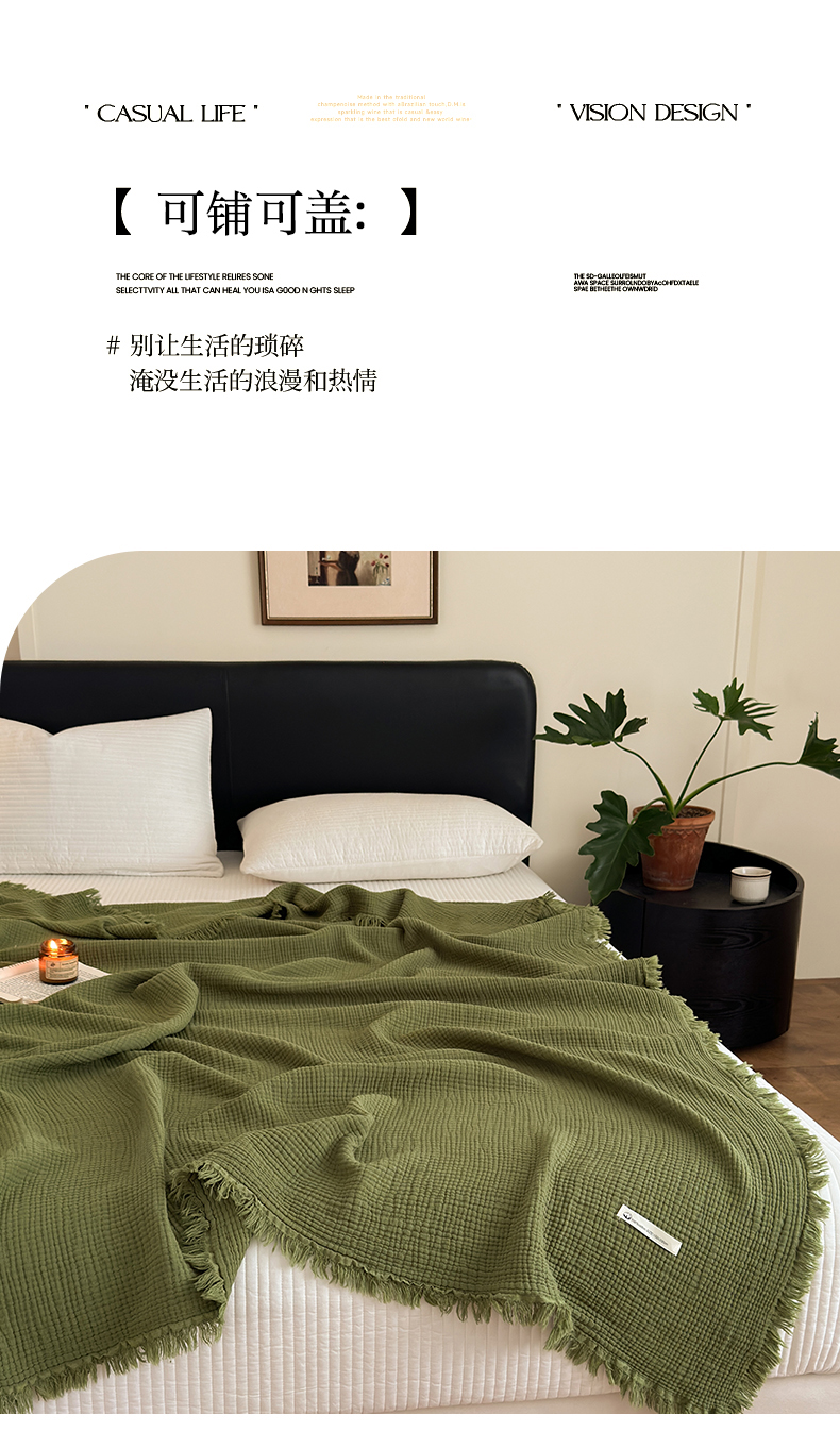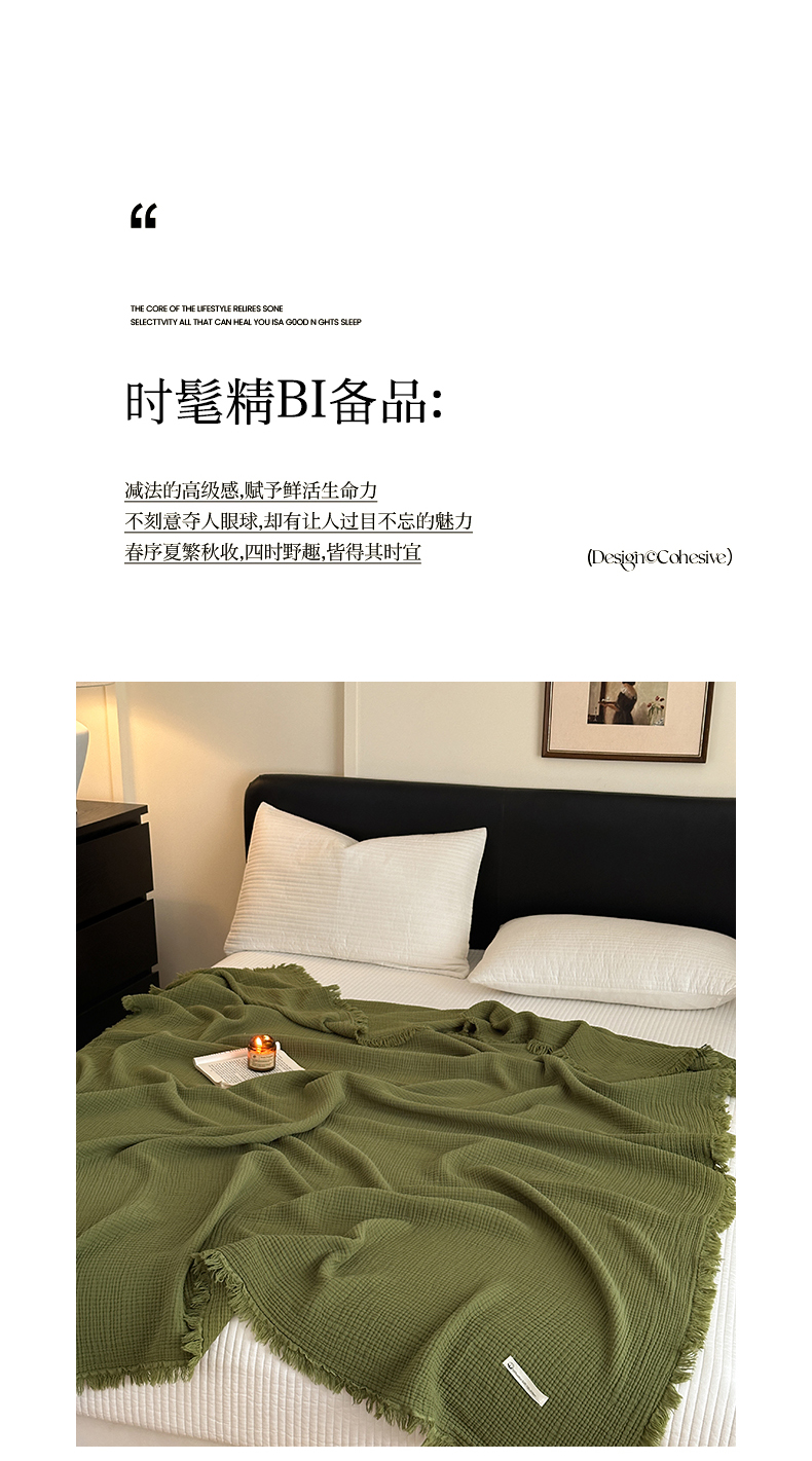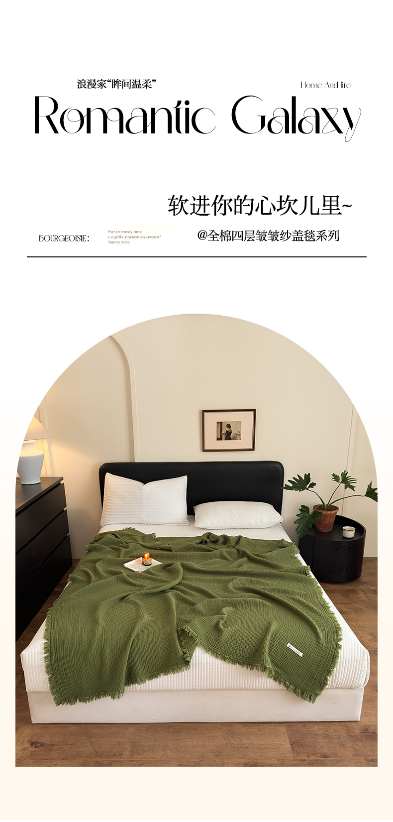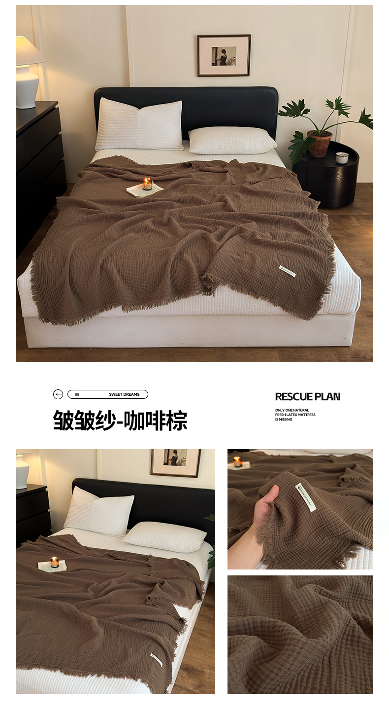 小叮当家纺仓储工厂店 2025新款全棉纯棉四层纱皱皱流苏毯毛毯毯子 皱皱纱-姜黄色