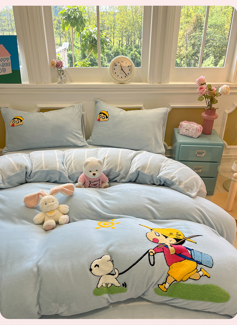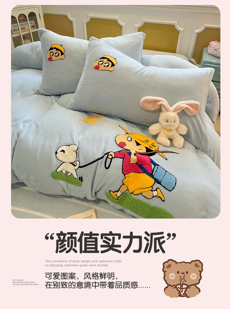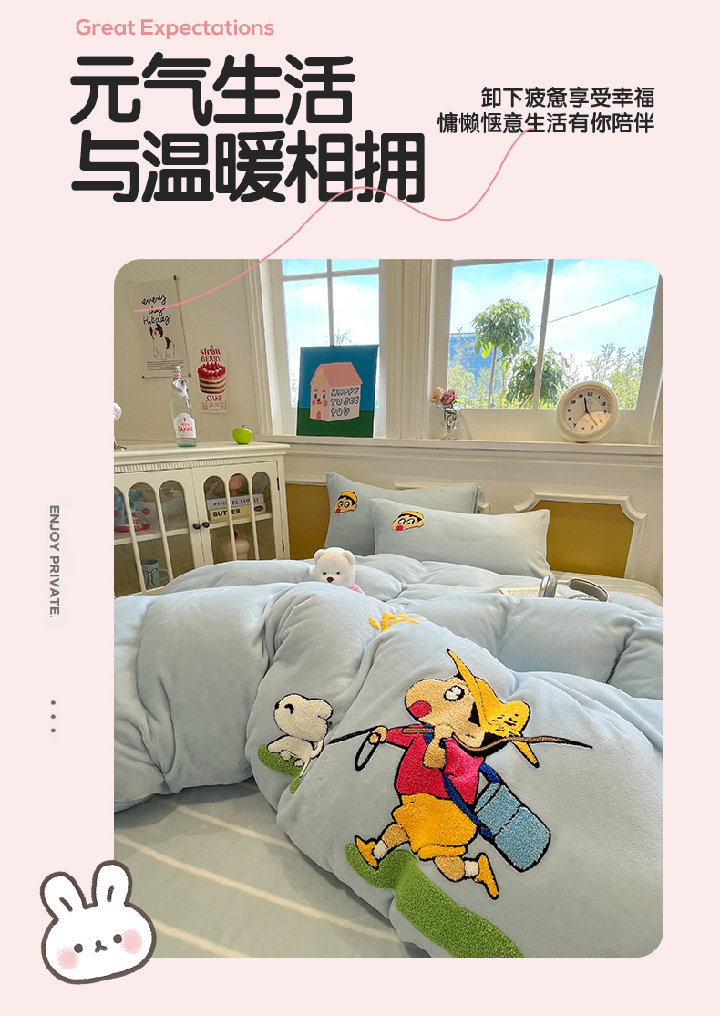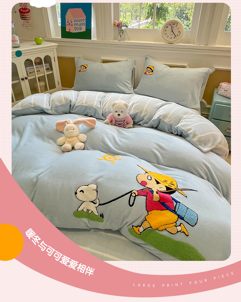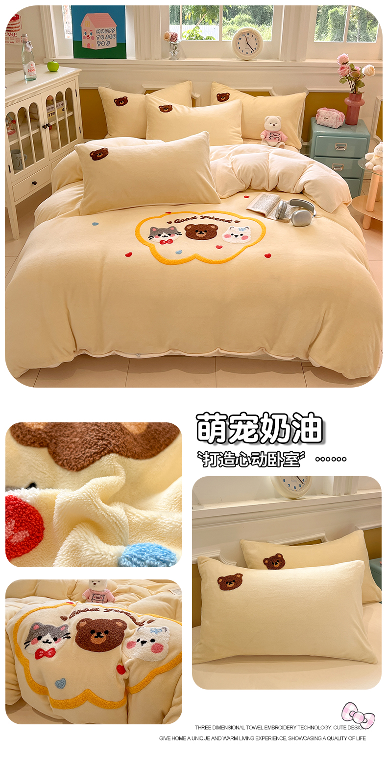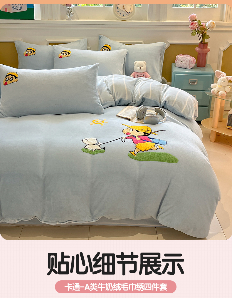 星座家纺 2025新款A类卡通200g牛奶绒毛巾绣四件套 春日漫游